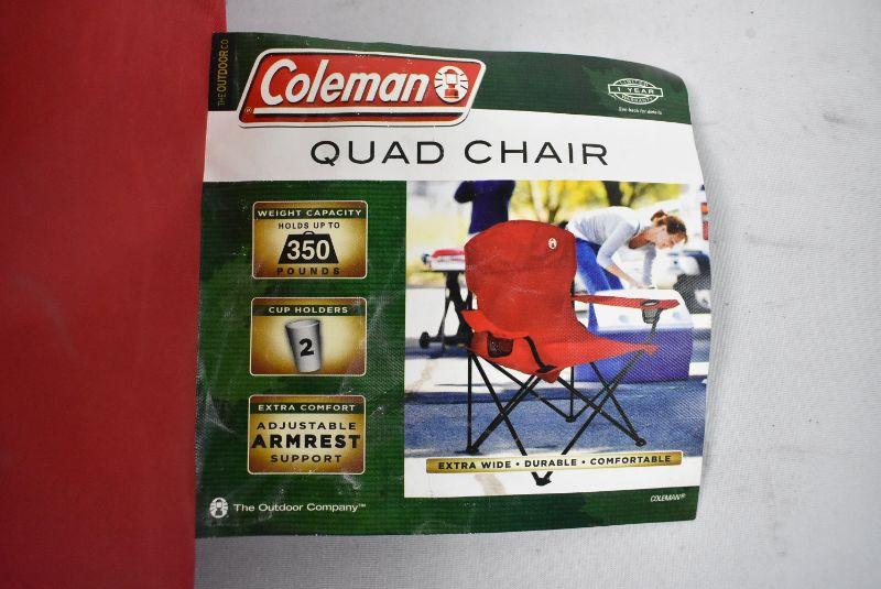 Red Coleman Quad Chair with 2 Cup Holders, Holds up to 350 Pounds