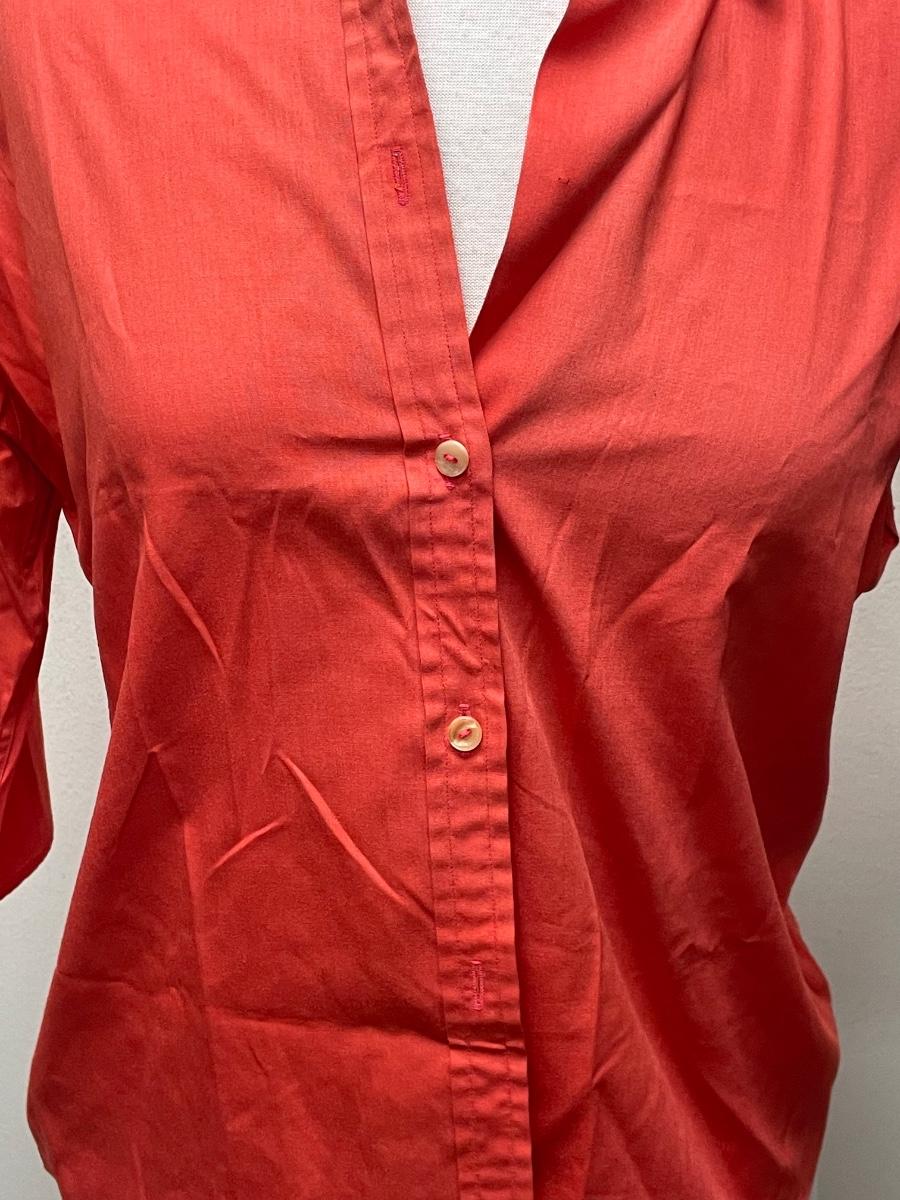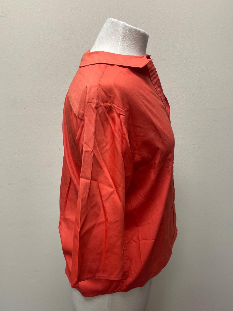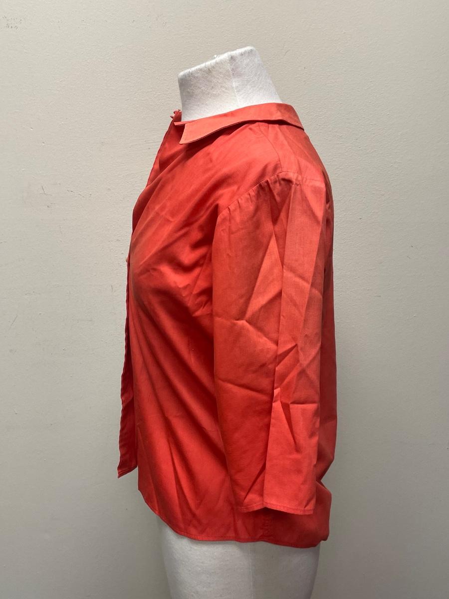The shirt is in decent condition. It is missing two buttons: one on the very top and one on the way bottom. It is wrinkled due to being folded. There isn’t any tags on the shirt but it seems to fit a small or medium.