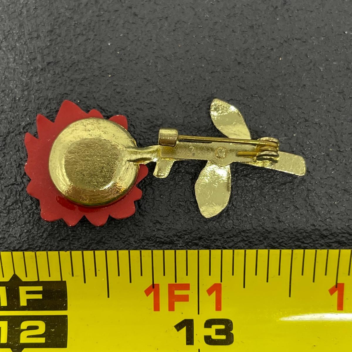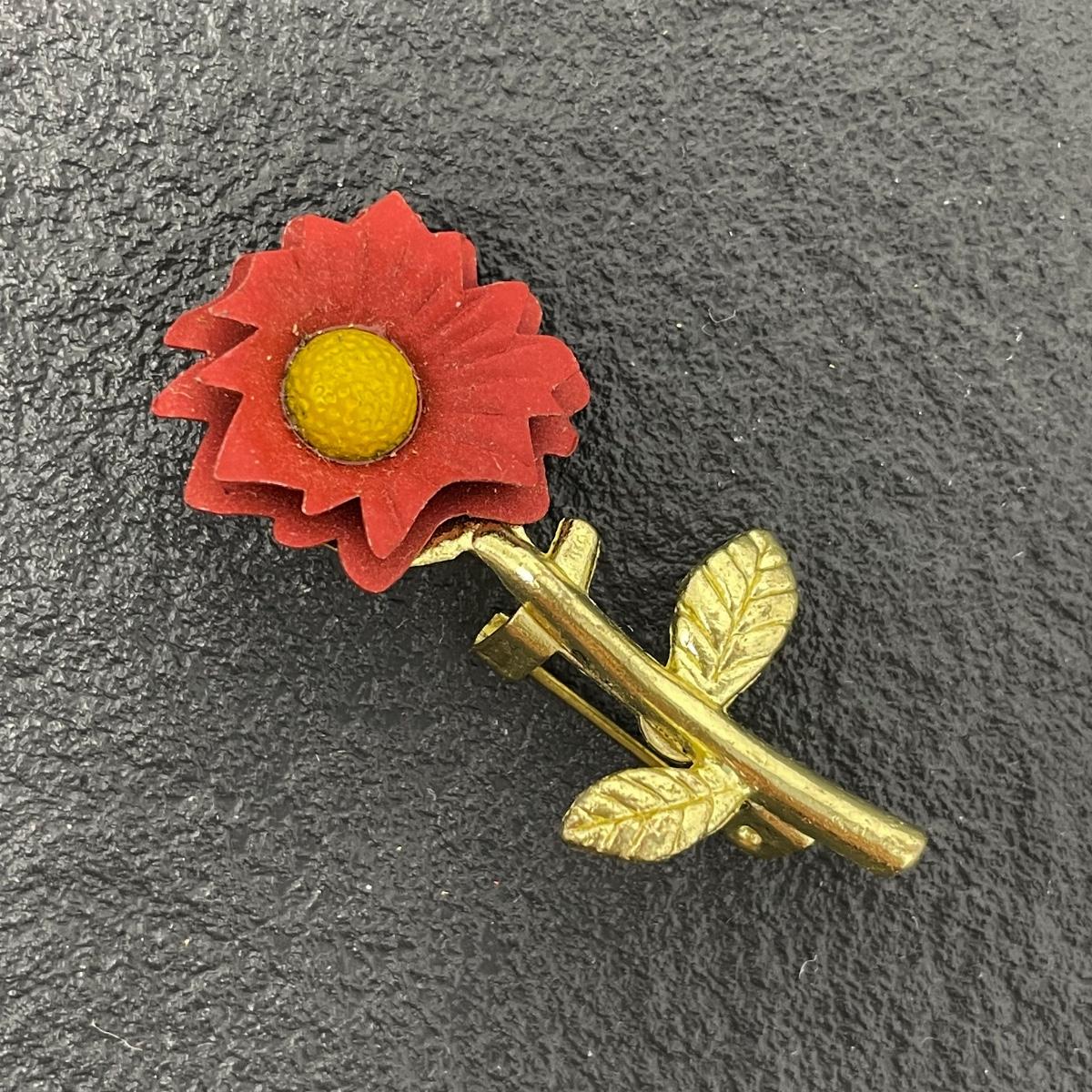 RED DAISY METAL BROOCH
