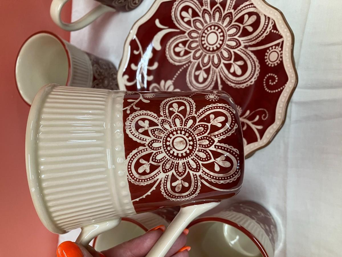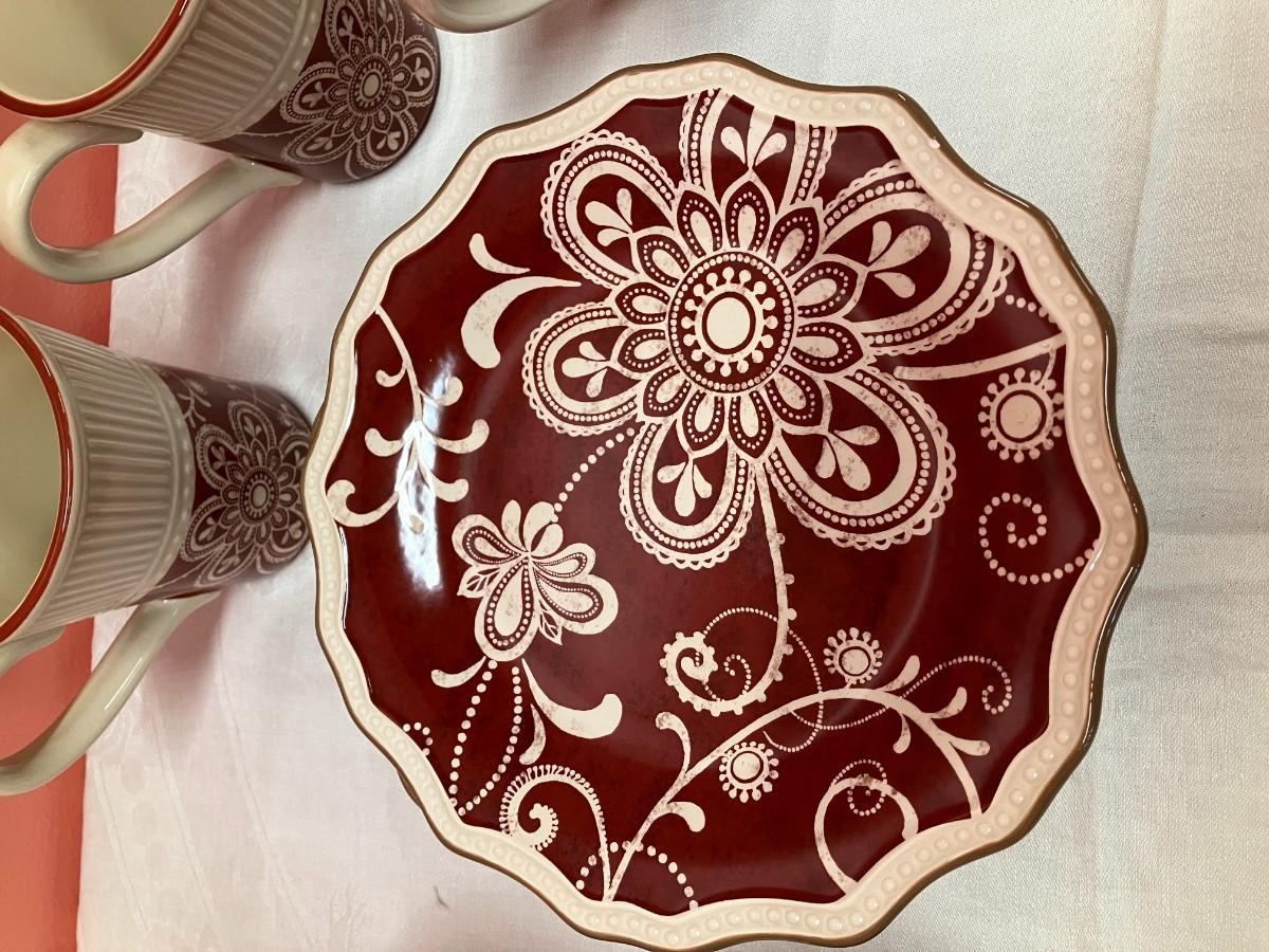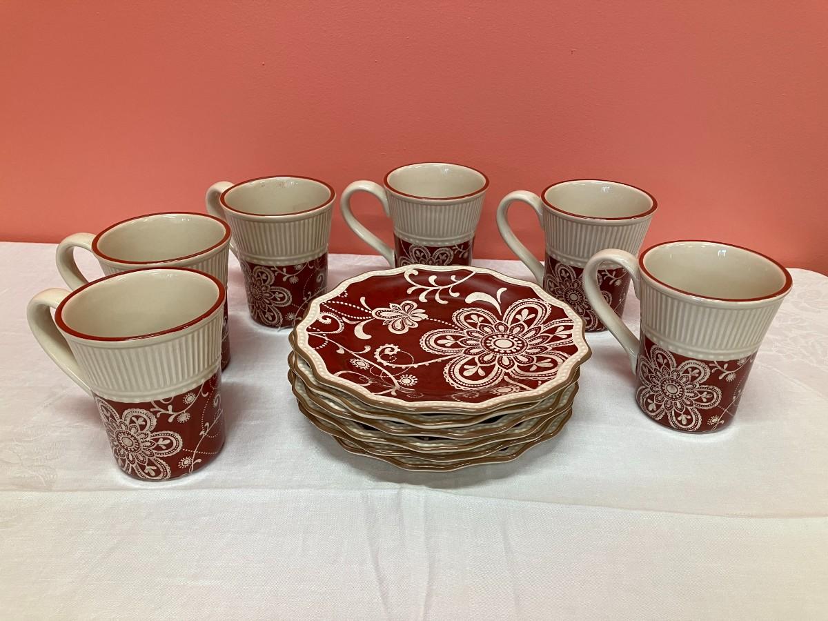 Lot contains 6 mugs, 6 salad plates, and 6 dessert plates