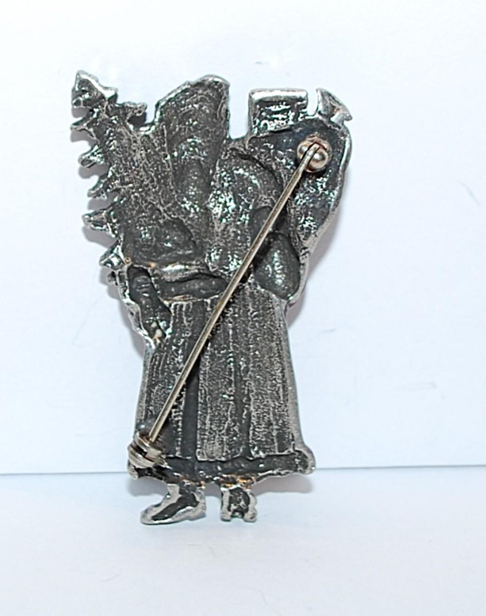 Red Enameled VICTORIAN SANTA BROOCH (2¼" x 1¼") with Toys & Tree on a Silver Tone Setting