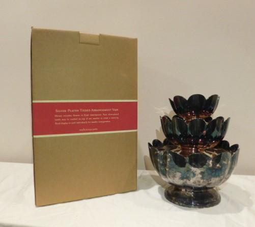Red Envelope Silver Plated Tiered Arrangement Vase with Original Box