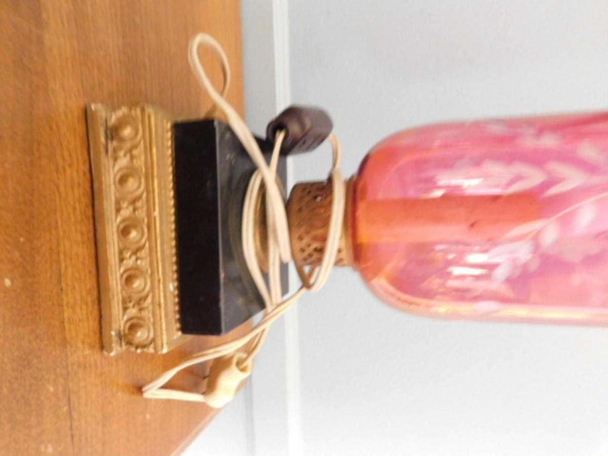 Red Etched Glass Electric Table Lamp with Square Base Choice A
