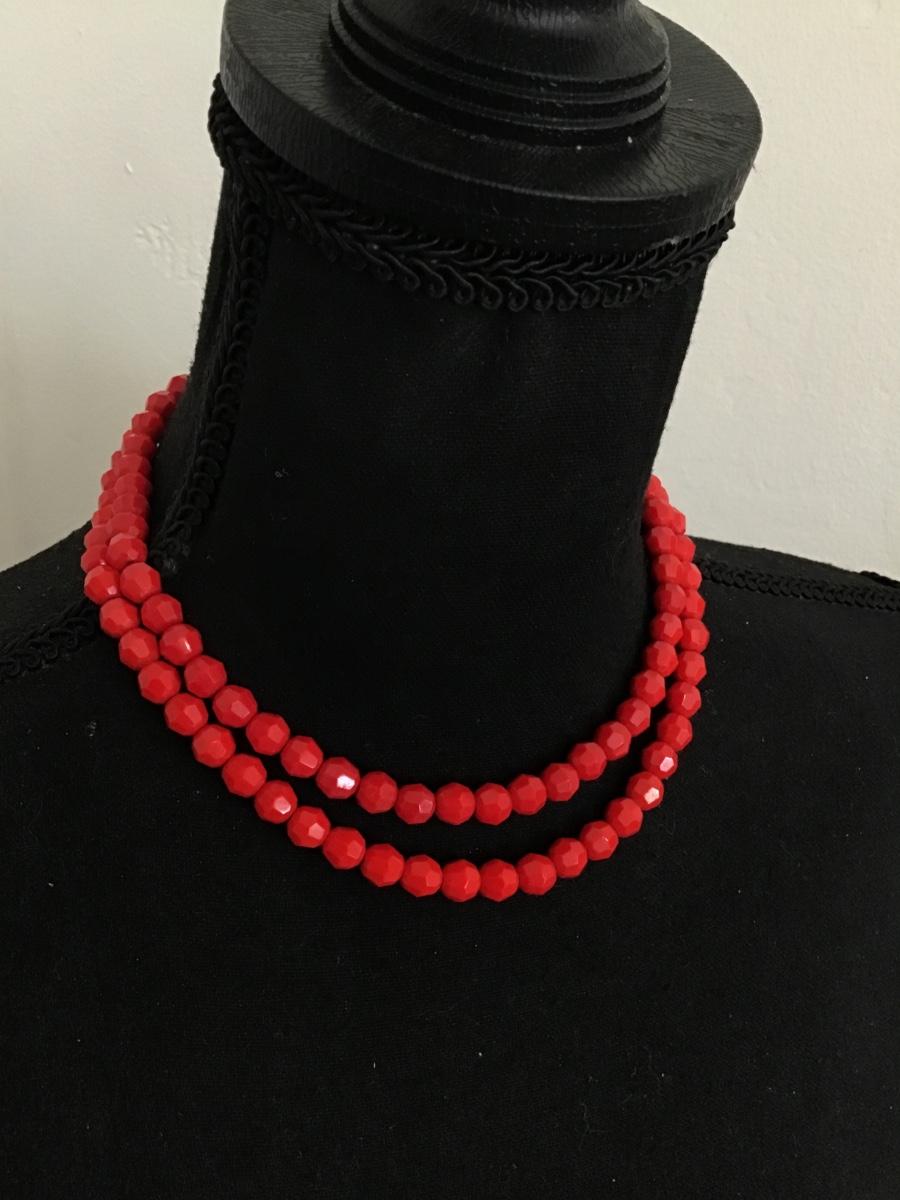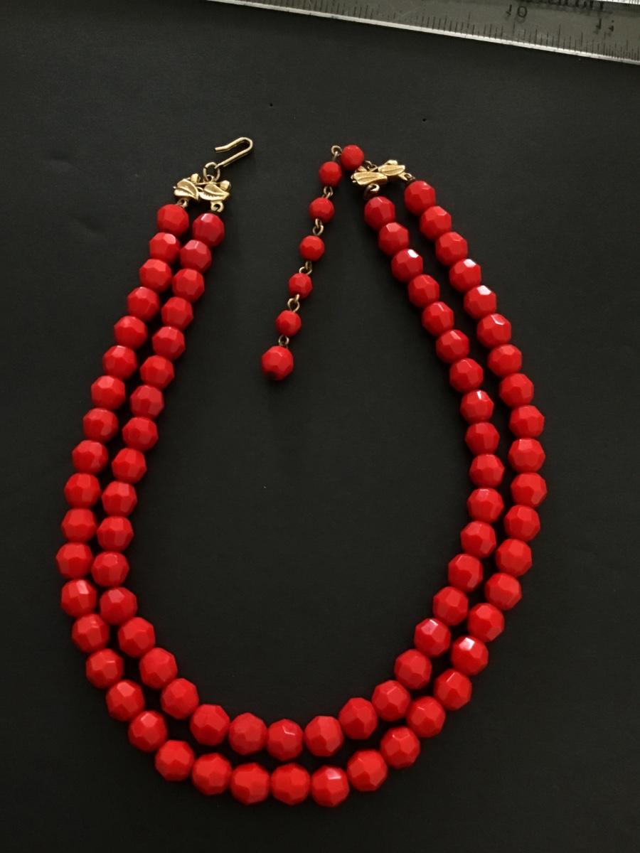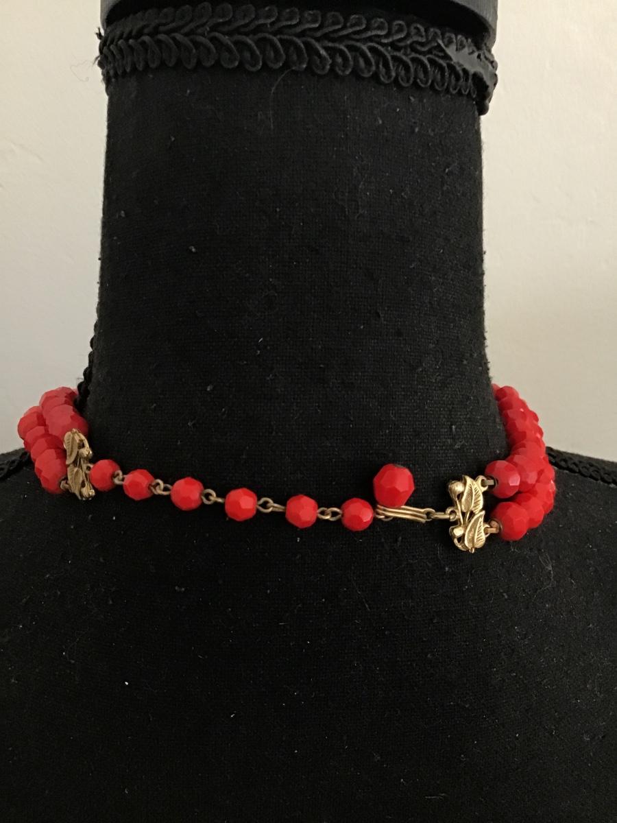 Red Faceted Glass Beaded Vintage Necklace Gold tone Closure Hook