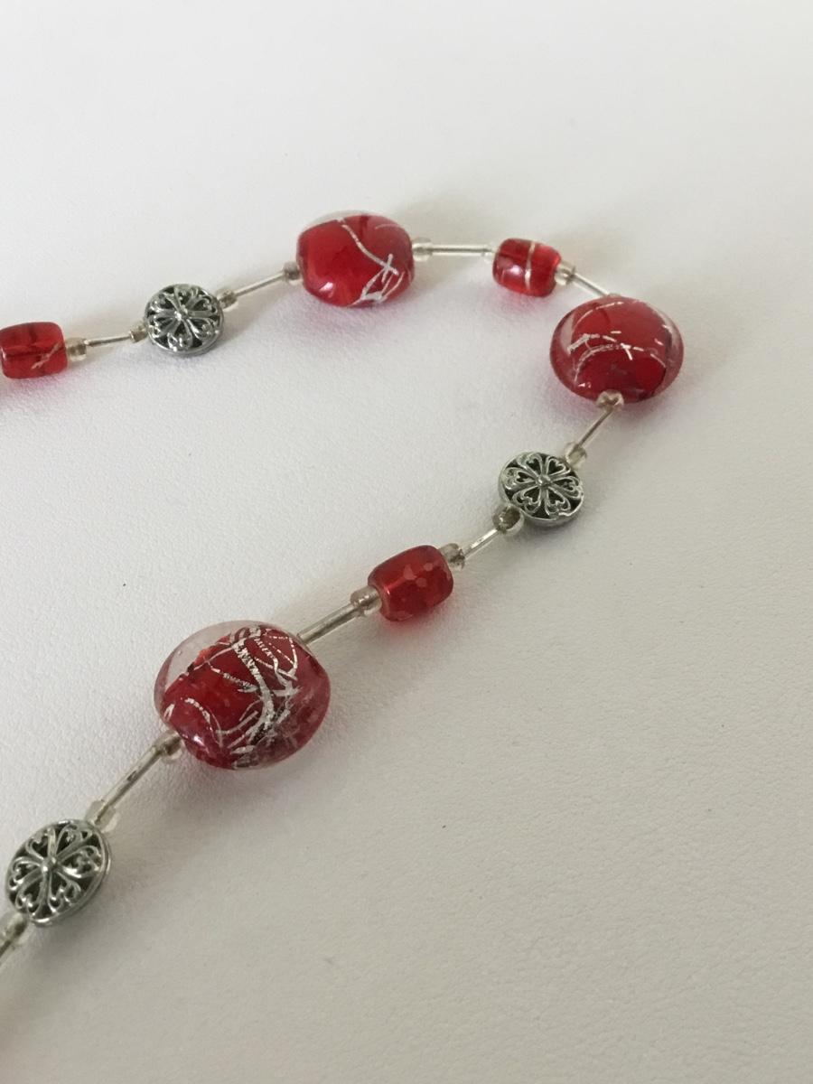 Red faux fashion beaded necklace