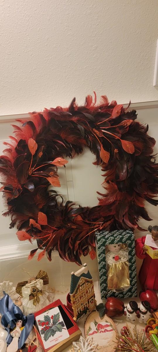 Red feather wreath, misc Holiday