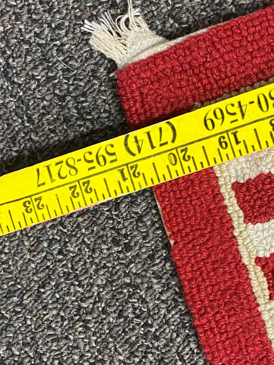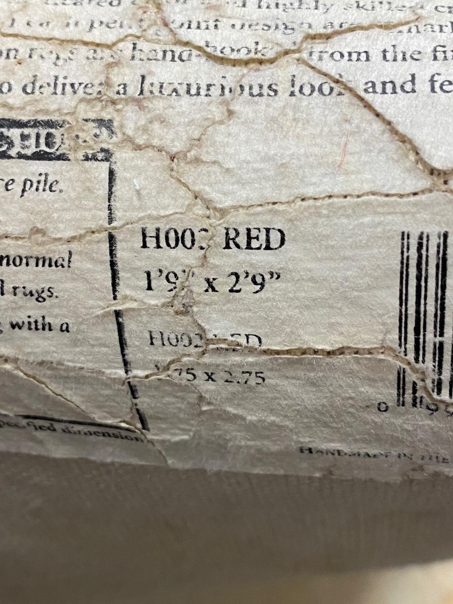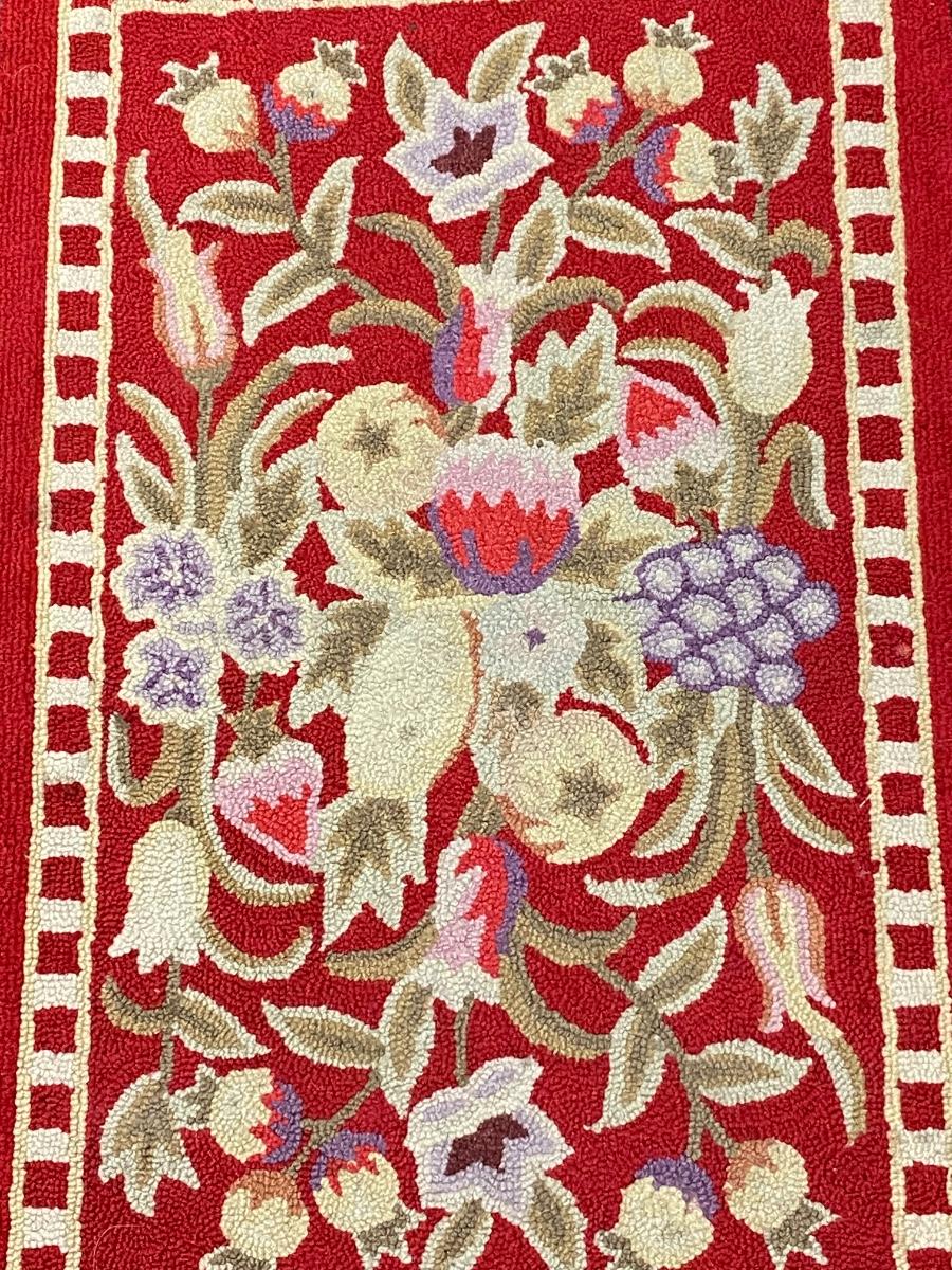 Floral red door mat. In fair condition, could use a cleaning. Just under 3'x2' size.