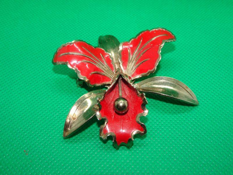 Red Flower Orchid Pin