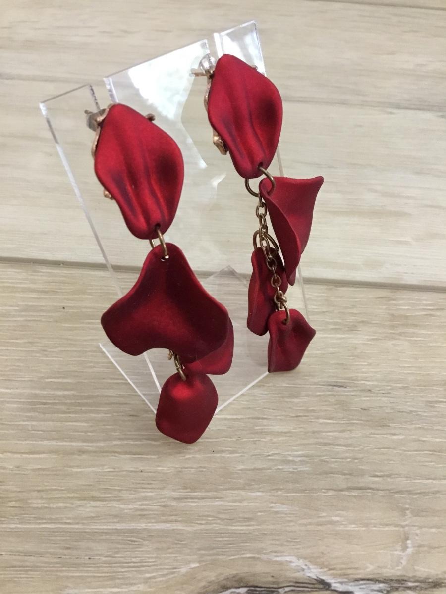 Red flower petal earrings