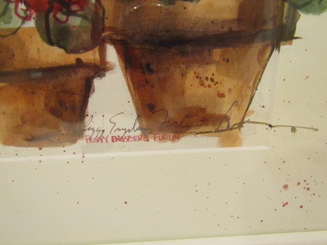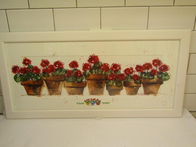 Red Flowers in Pots Framed Art by Peggy Engsberg Furlin #214/300
