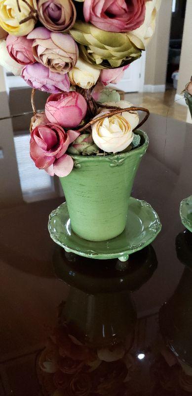 Red Flowers with Green Pot