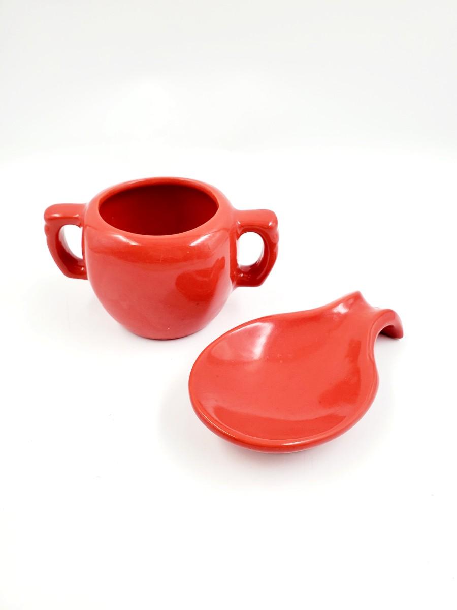 RED FRANKOMA SPOON REST AND SUGAR BOWL