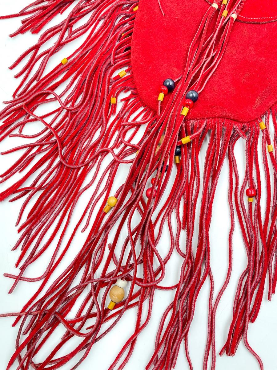 Very cool piece! Does have some darkness/discoloration as shown, but it is less visible not under direct light. Does also have some of the fringe pieces missing.