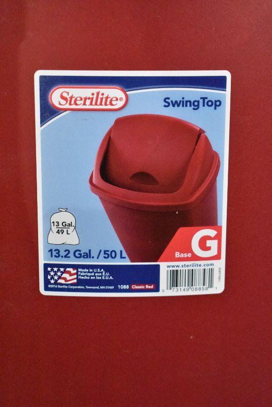 Red Garbage Can by Sterilite, 13 gallon size, no lid. Needs cleaning