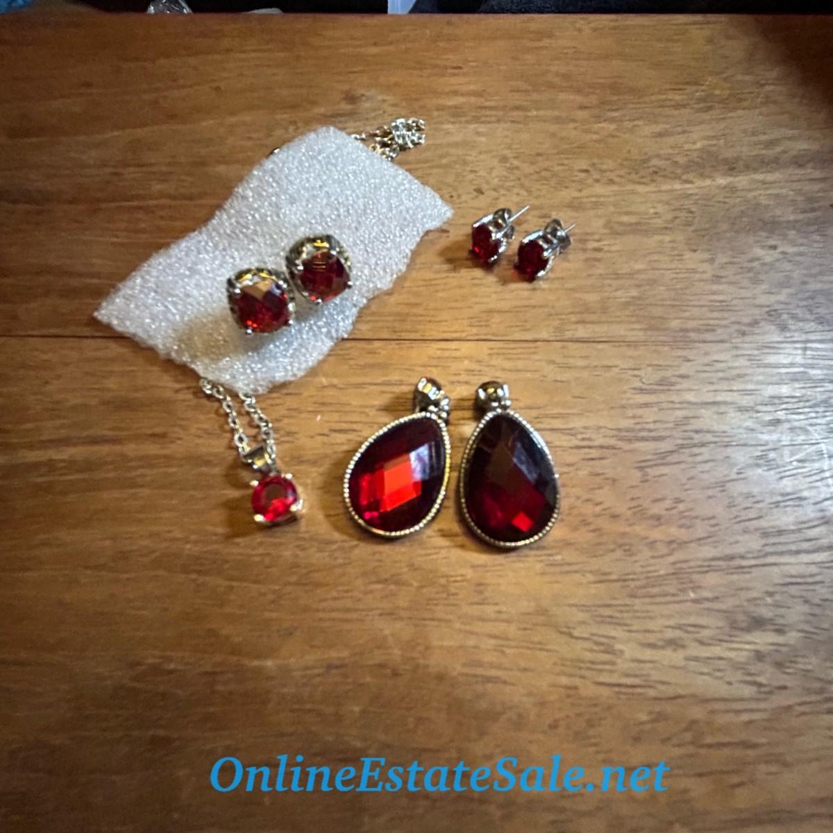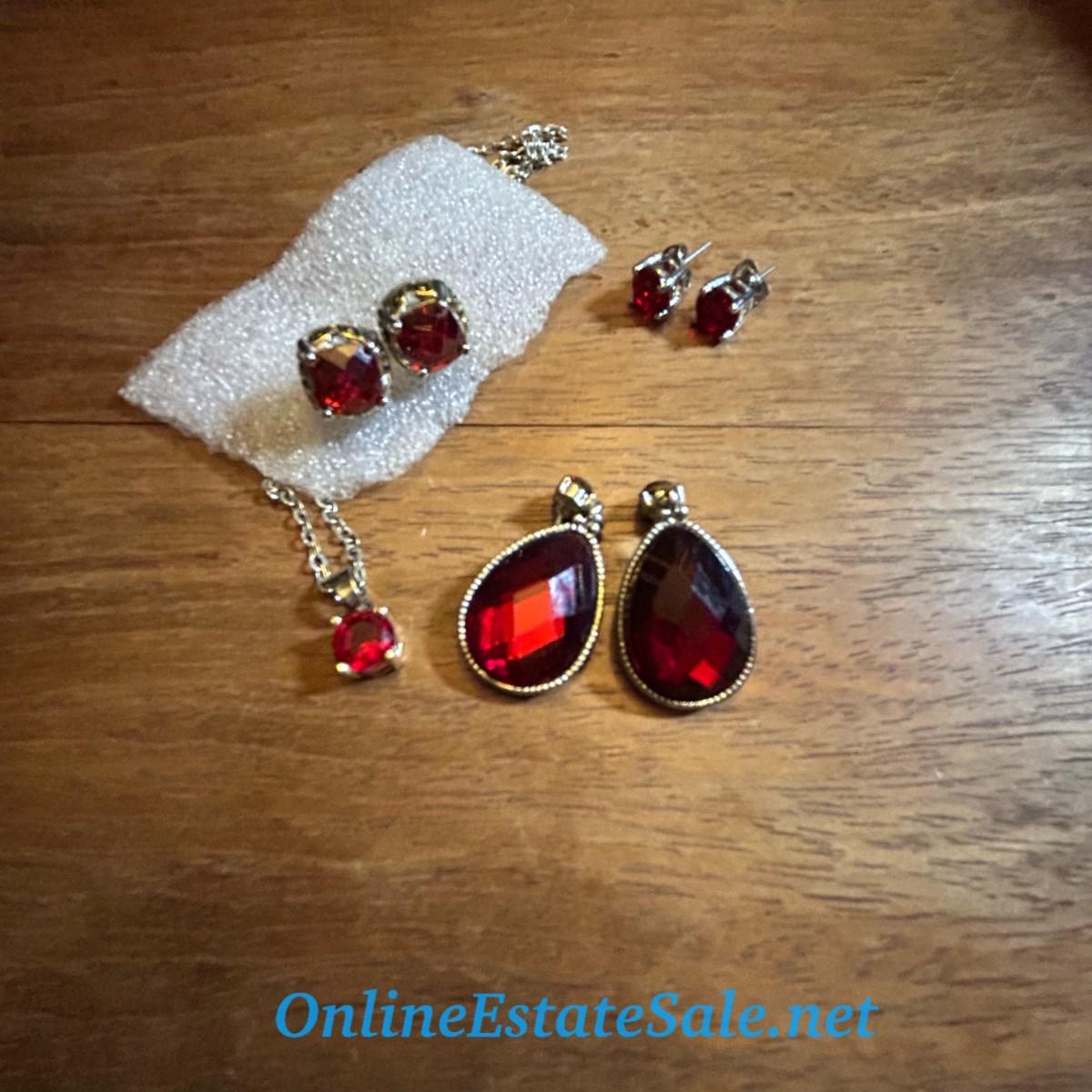 Medium Red Gem Stud Earrings with Silver Colored Setting