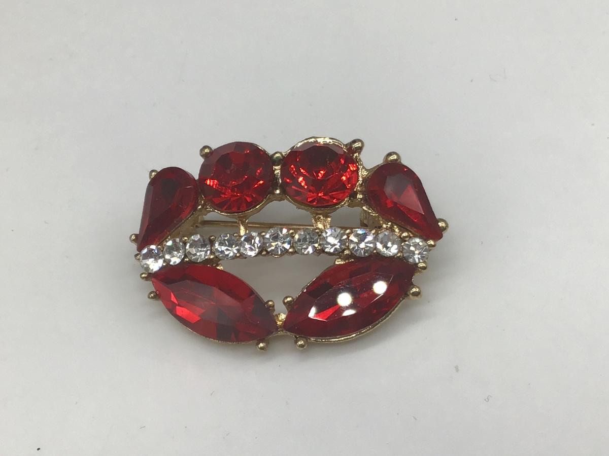 Red Glass and Faux Diamond Brooch