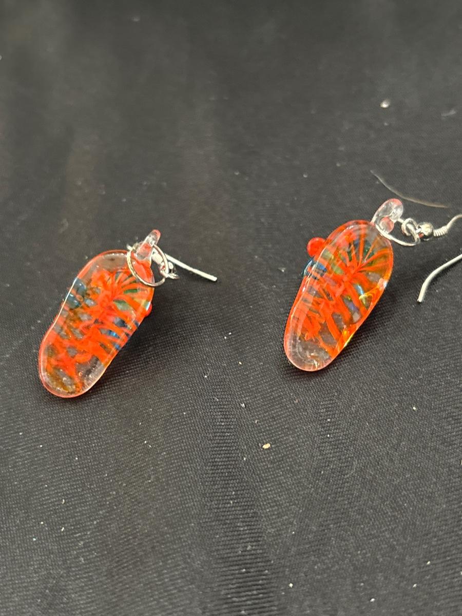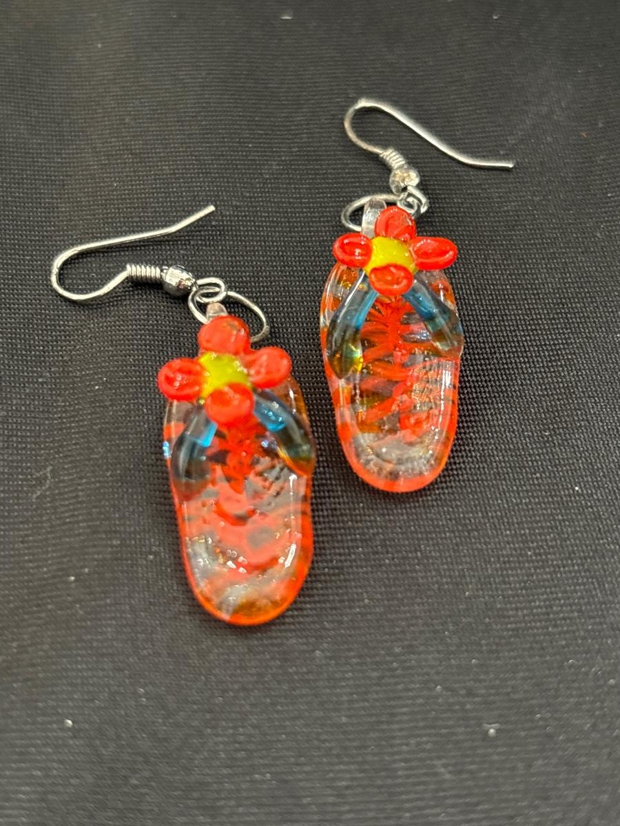 Red glass flip flop earrings