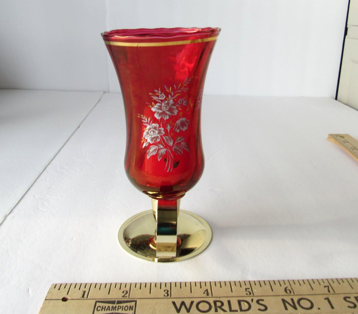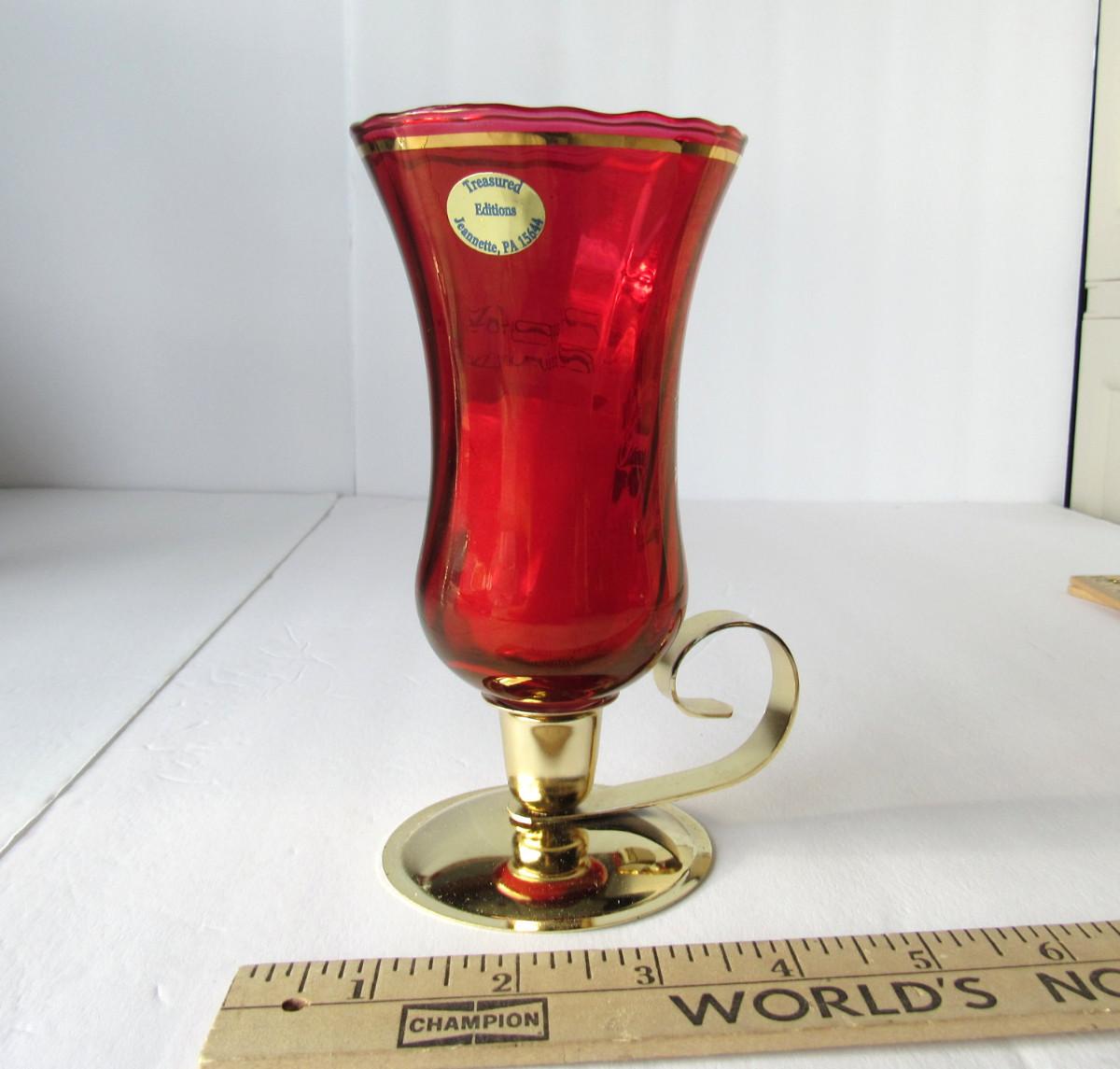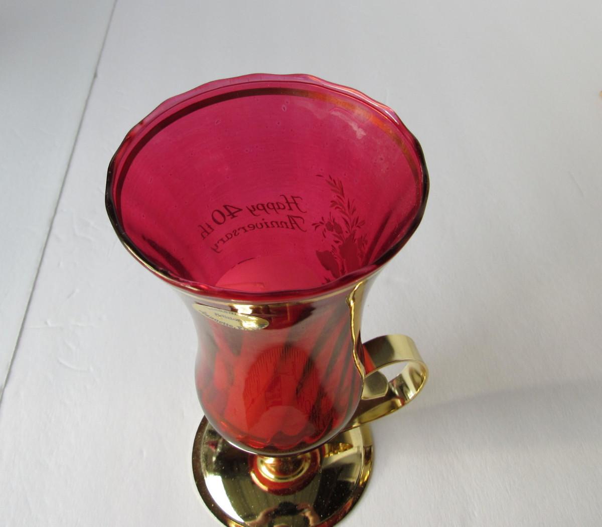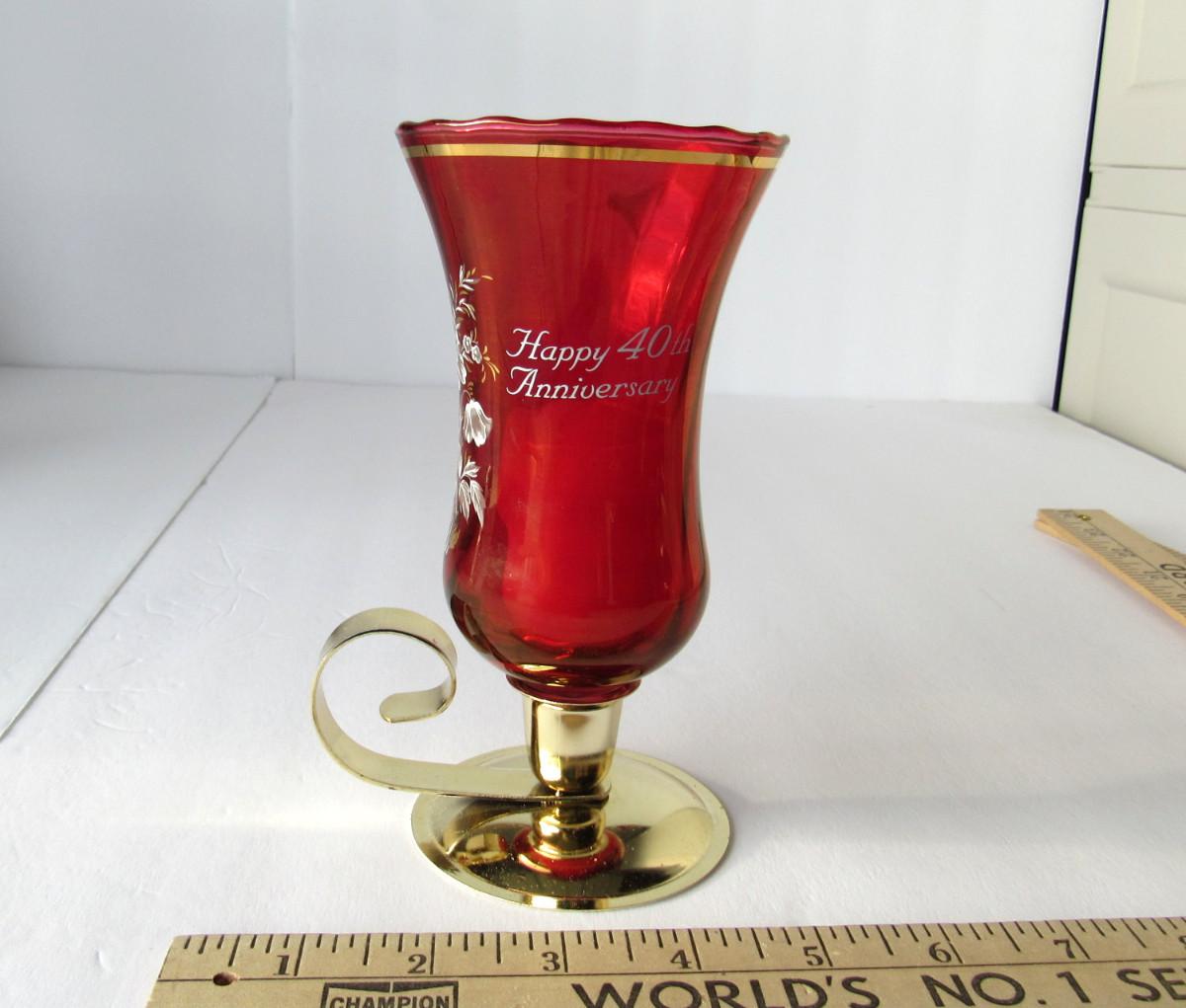 Lot 236: Red Glass Happy 40th Anniversary Candle Holder, West Germany
