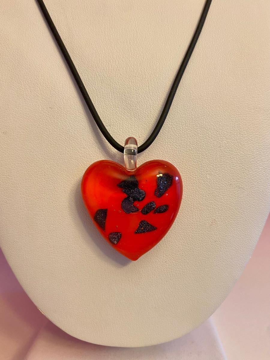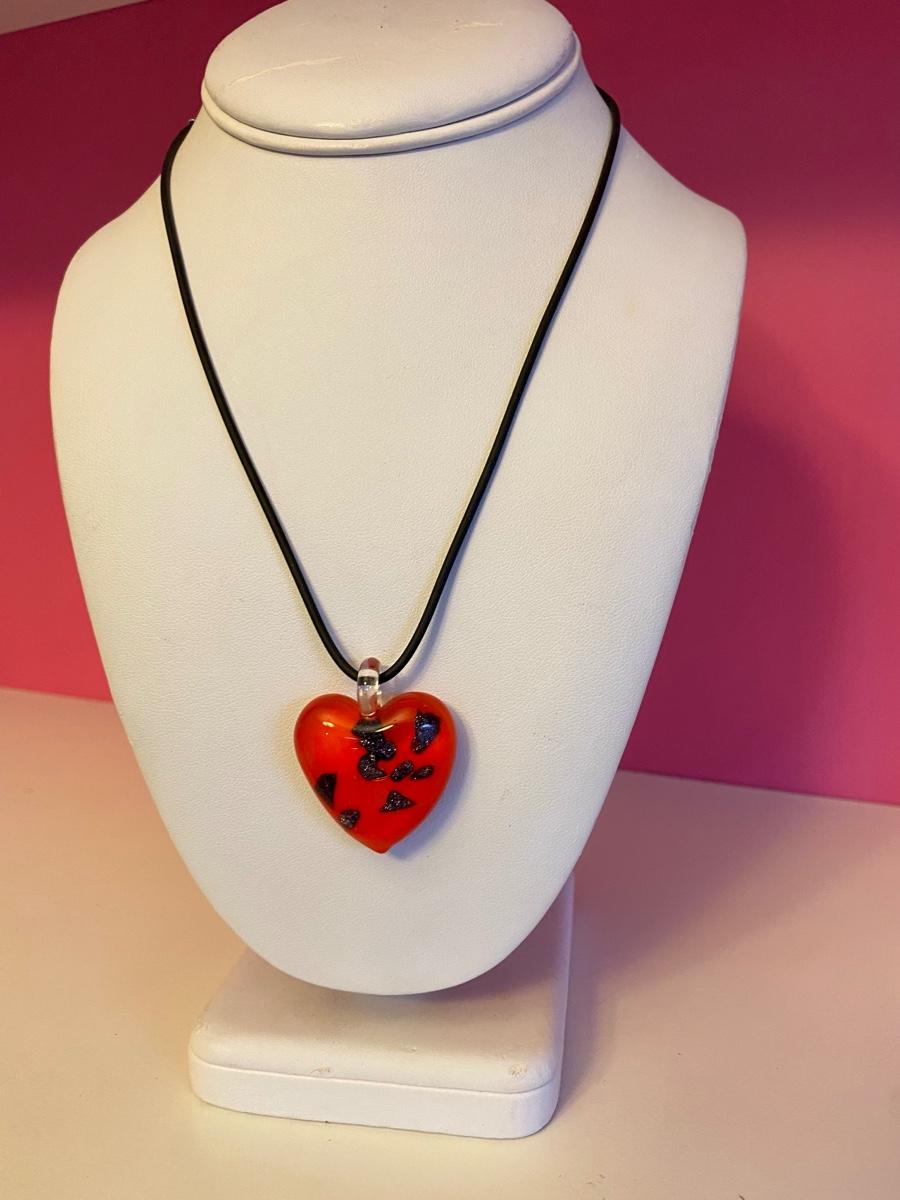 Red Glass Heart Pendant Necklace