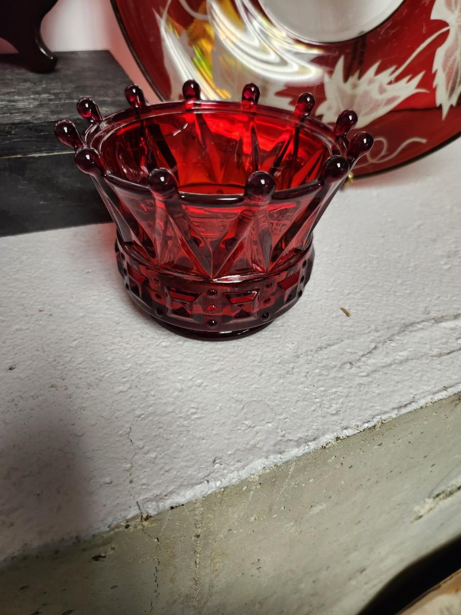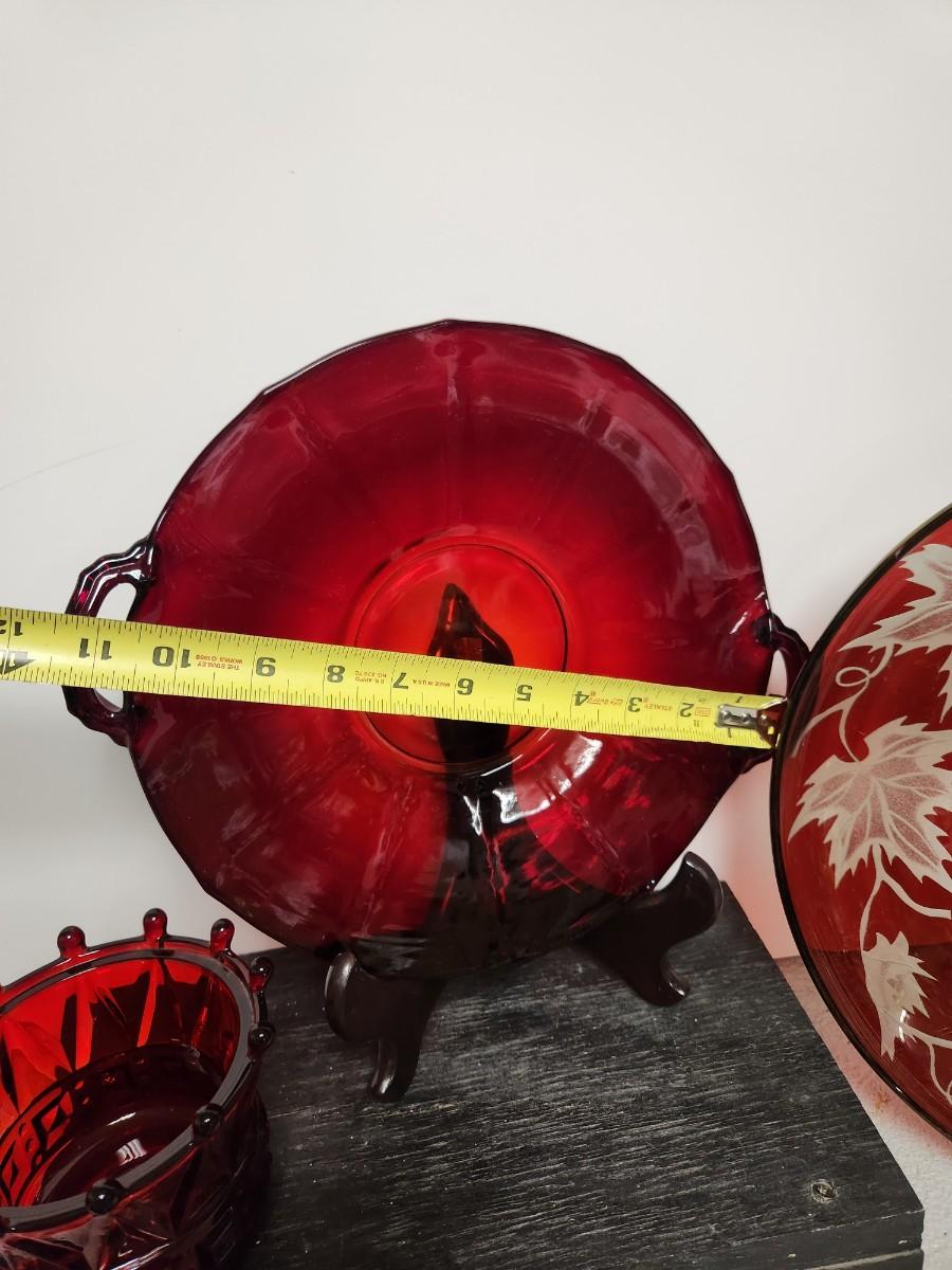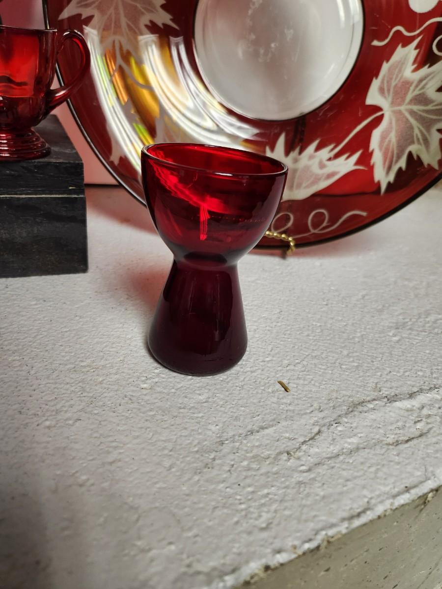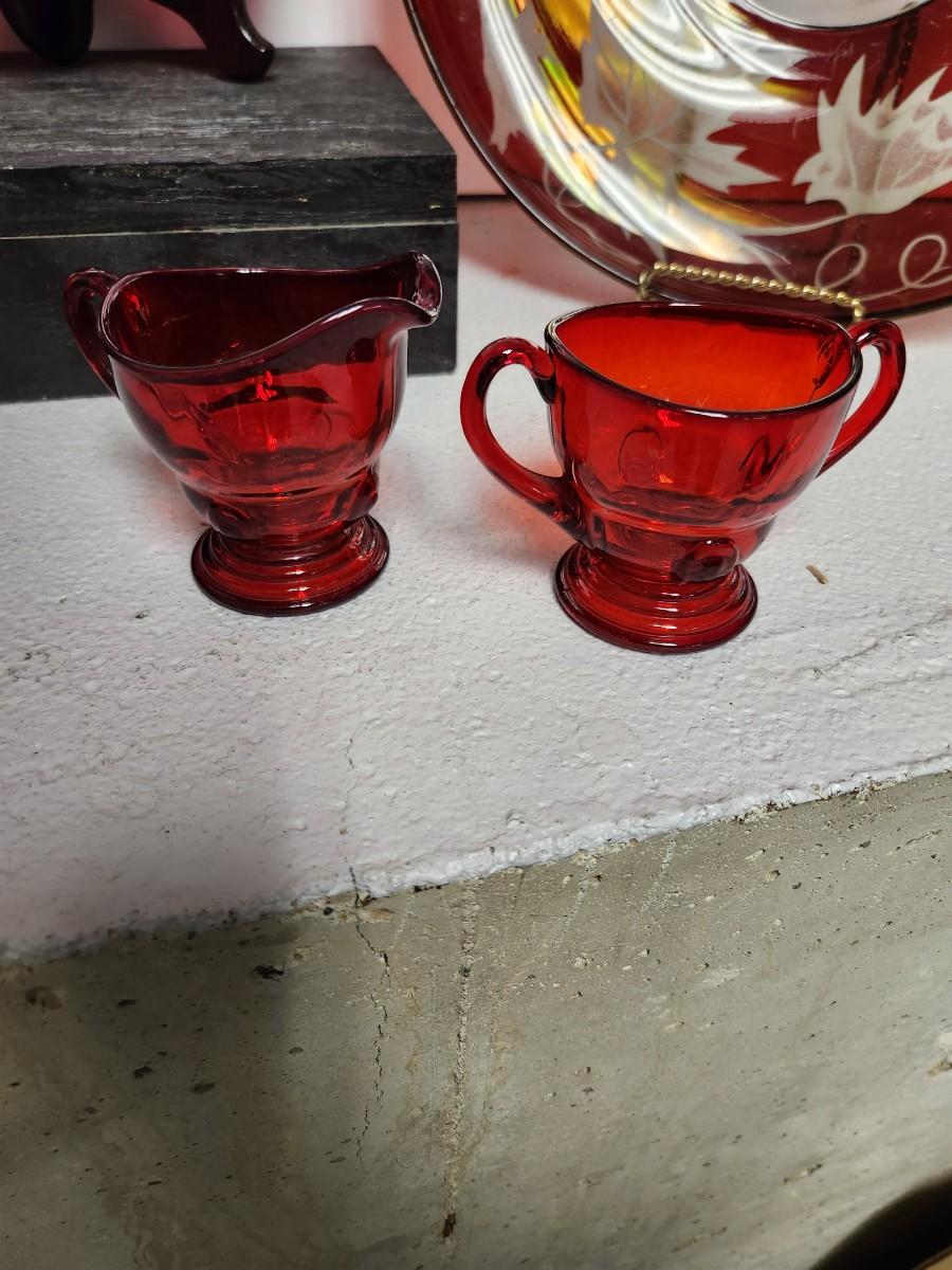 Lot of ruby flashes and ruby glass pieces. The clear box with the red lid is for playing cards.
