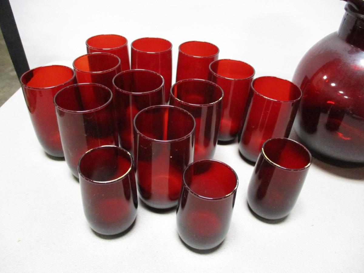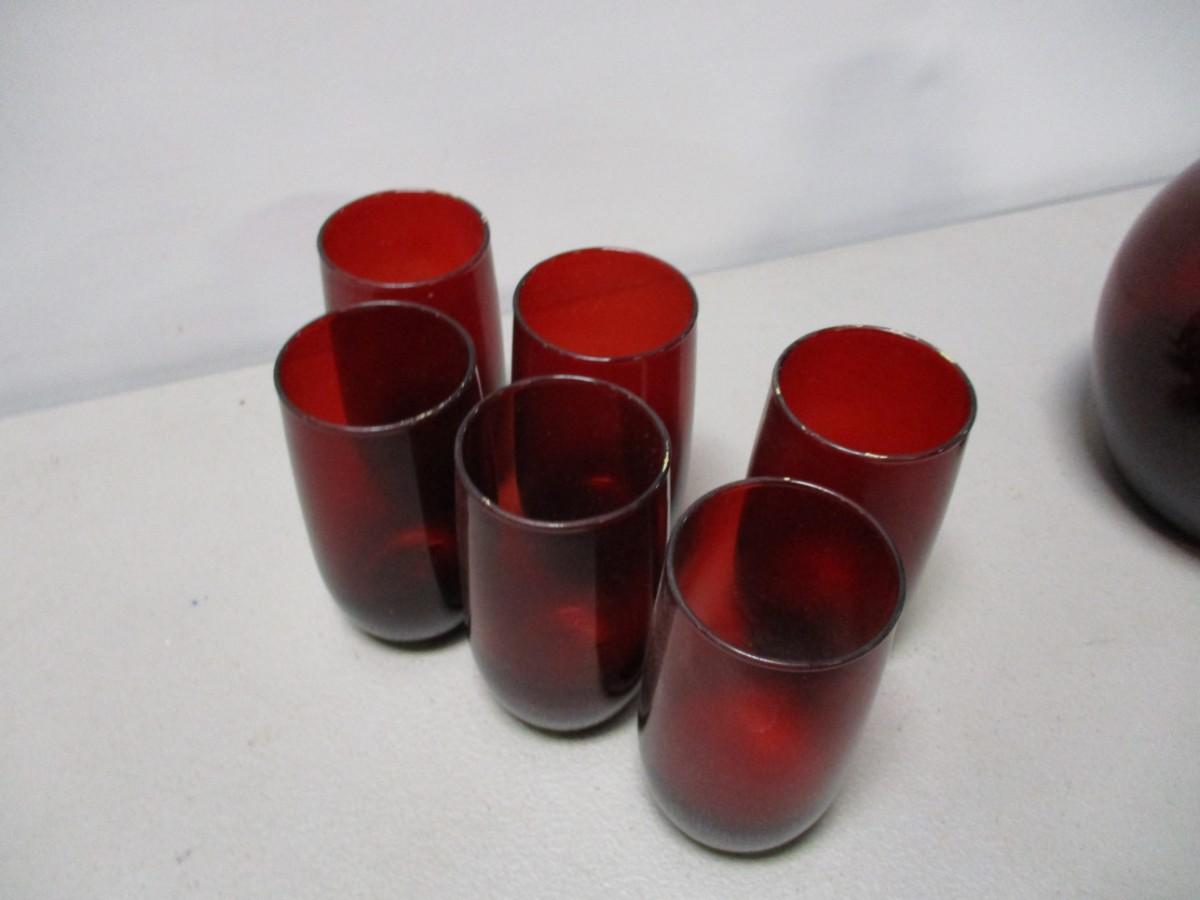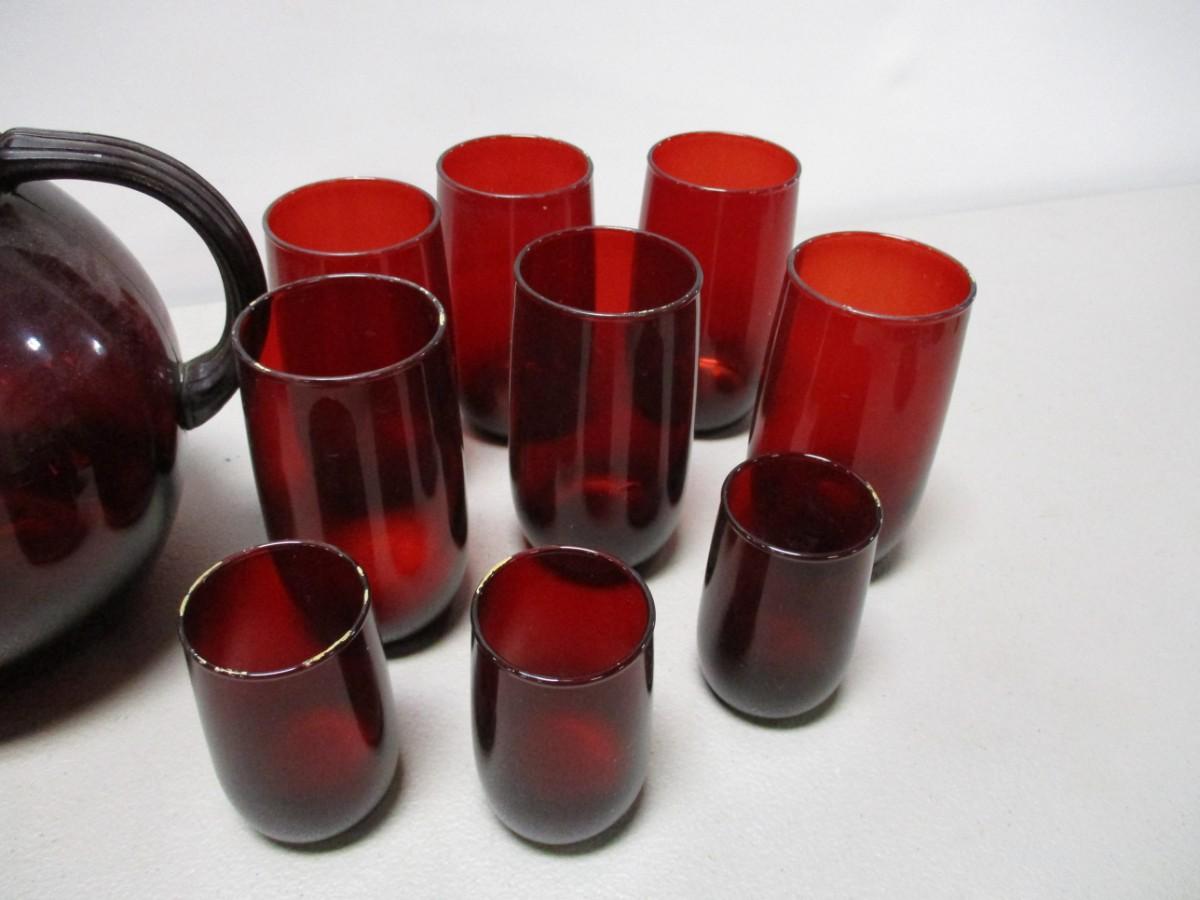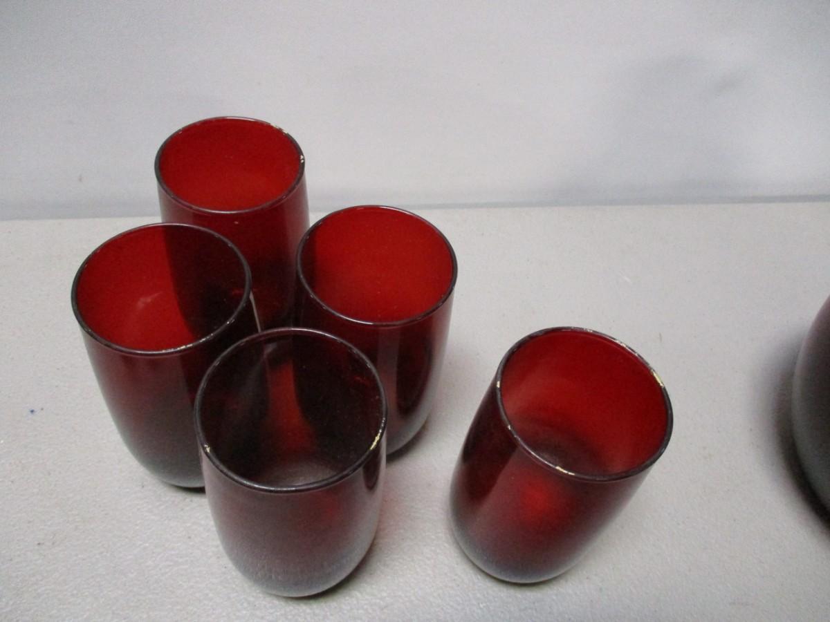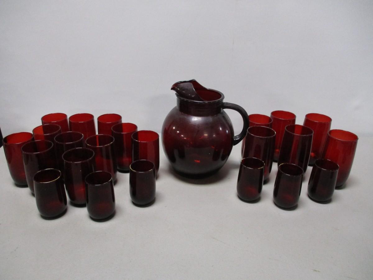 Anchor Hocking Royal Red Glasses & Pitcher