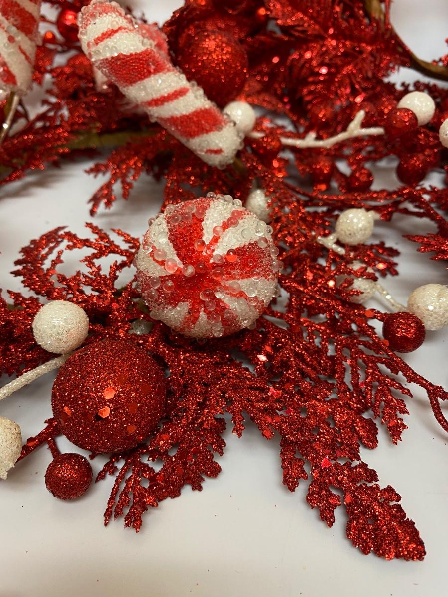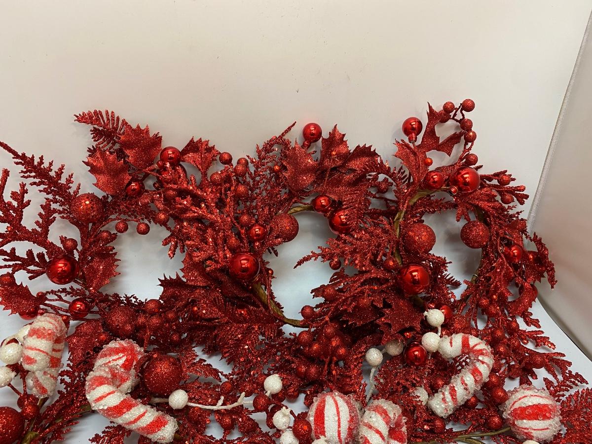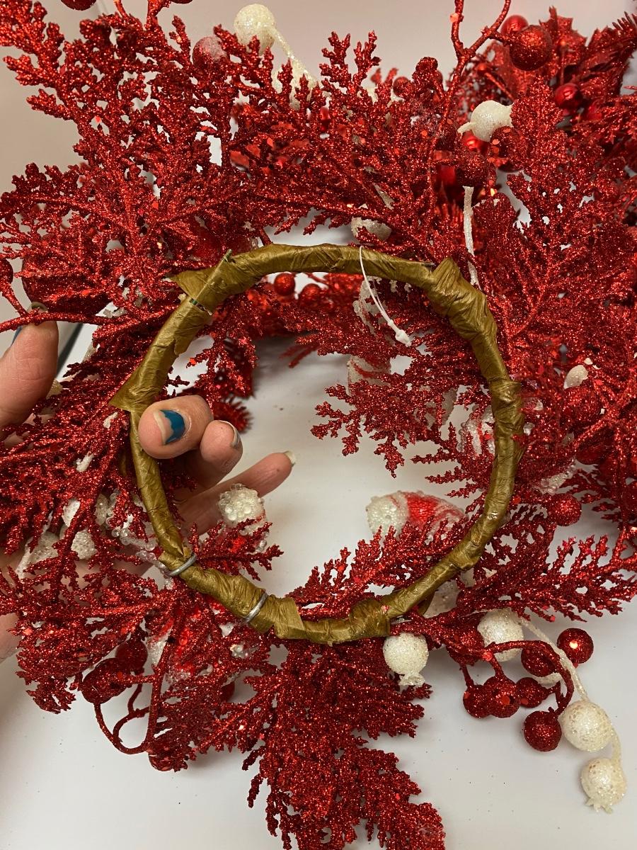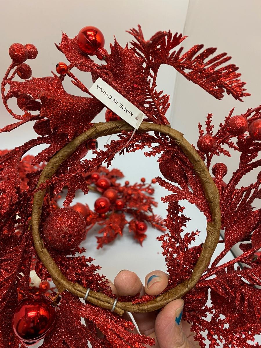 Lot of 5 red glitter covered Christmas holiday wreathes. Small size, good for craft projects or as is. Can be hung or used as candle wreathes/table decor. About 12" to 15" outside diameter.