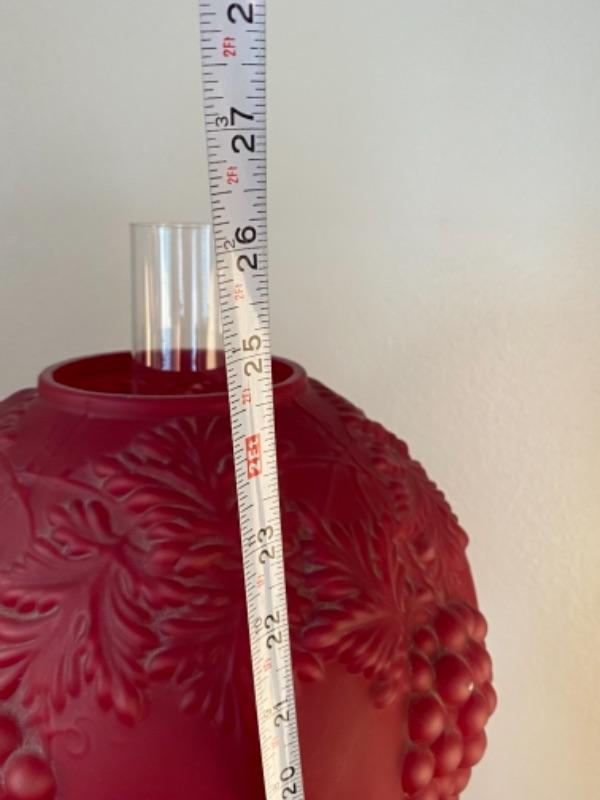 Red Satin Grape Pattern Glass Globes Hurricane Style Success Table Lamp
