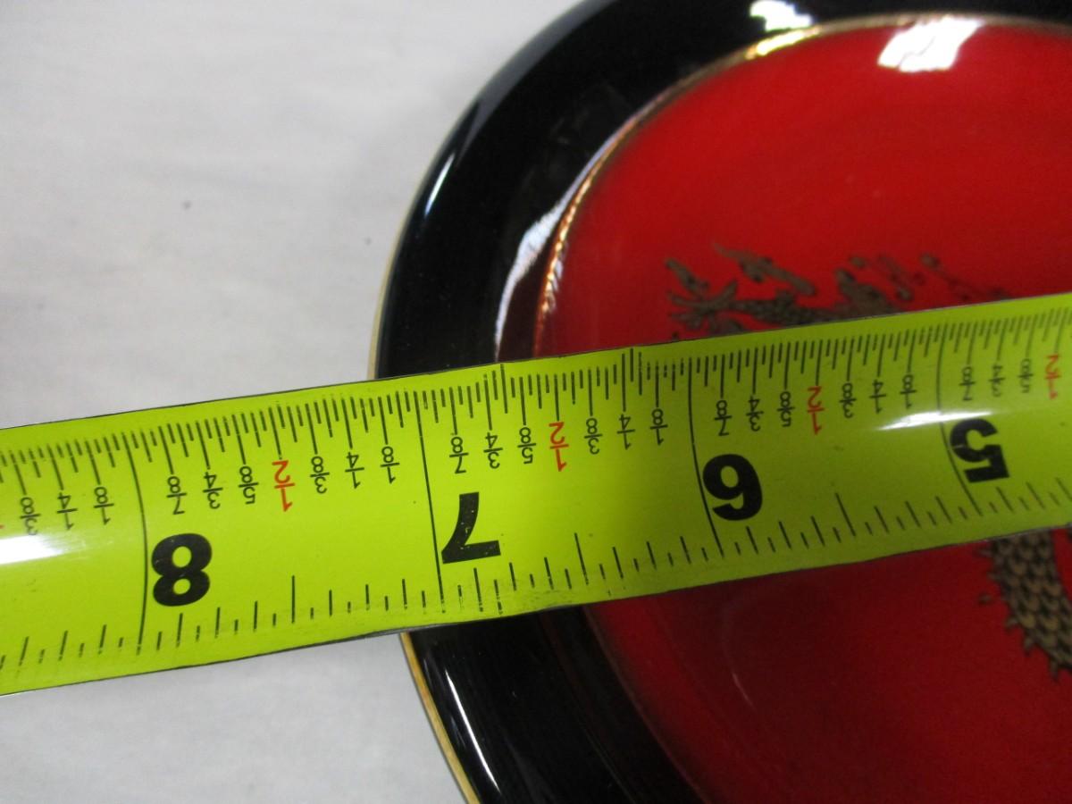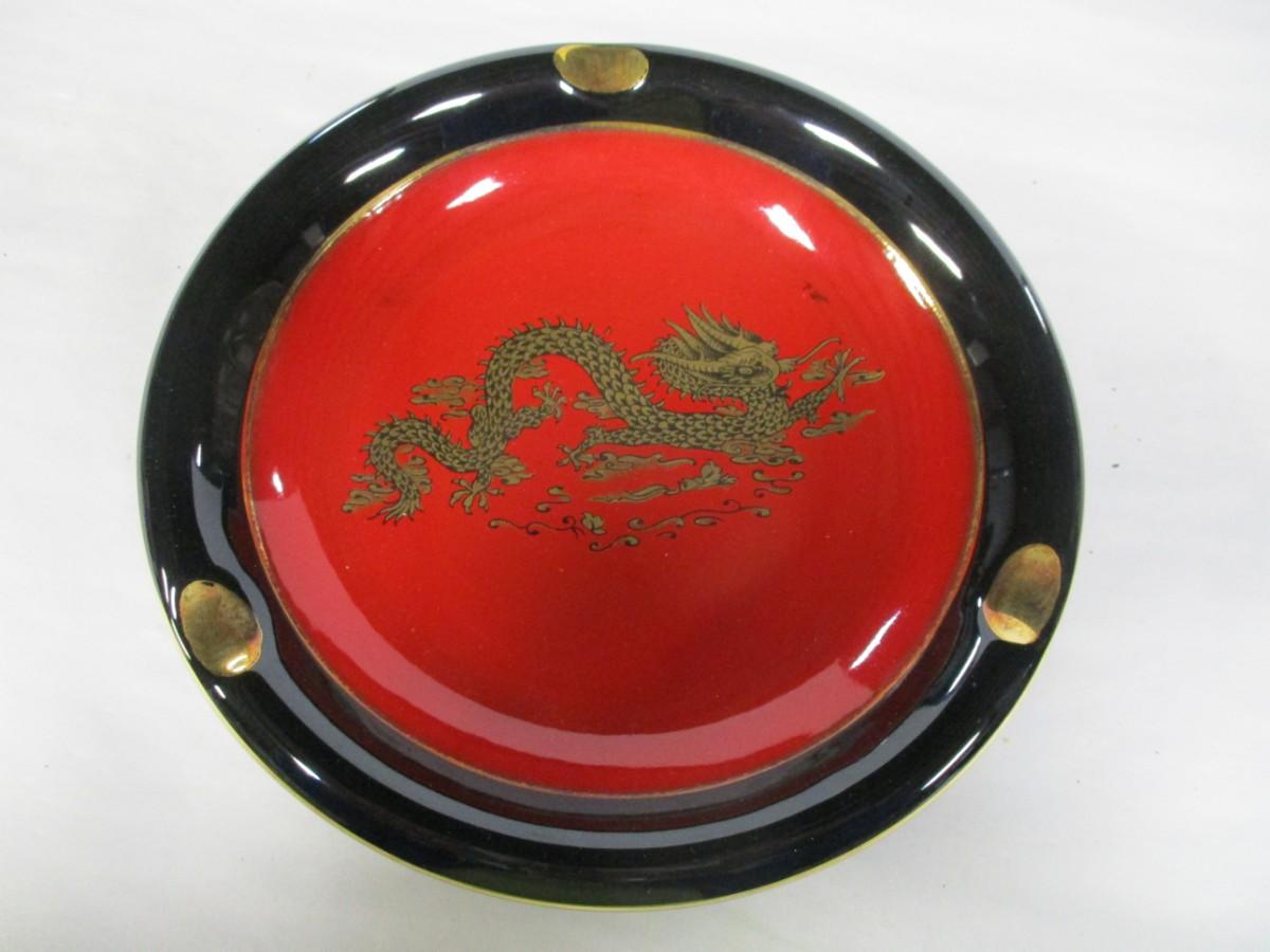 Hand Made Asian Themed Gold Dragon Ashtray with Vibrant Black and Red Lacquer Finish by Hagill Import