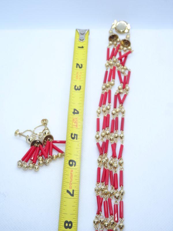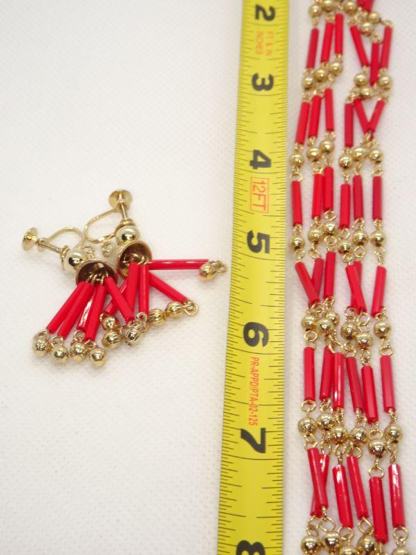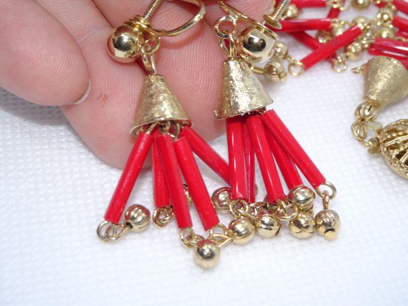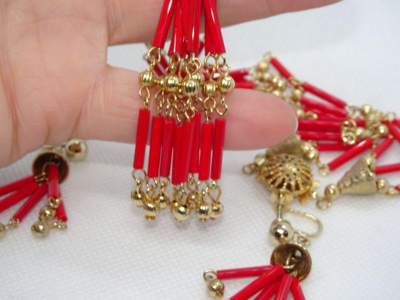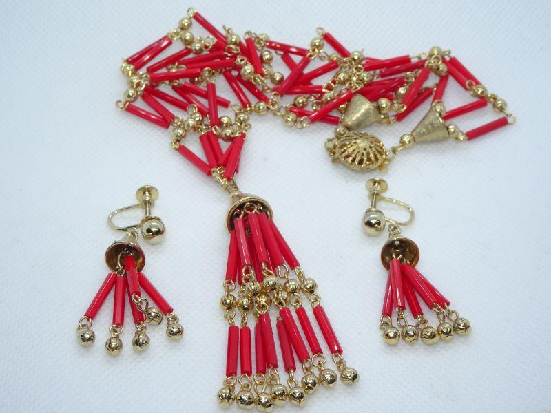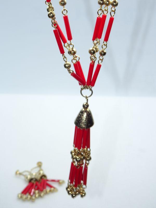 Red & Gold Tone Tassel Necklace & Matching Earrings MCM
