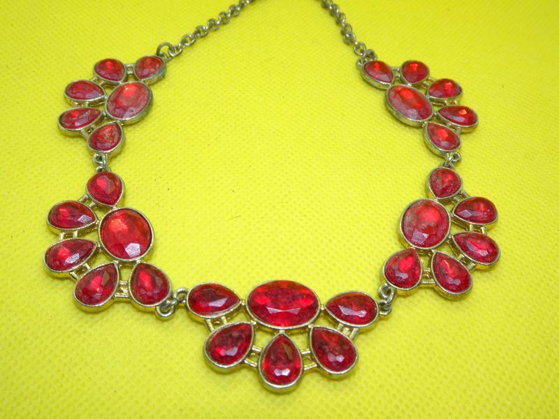 Red & Goldish Tone Cluster Necklace
