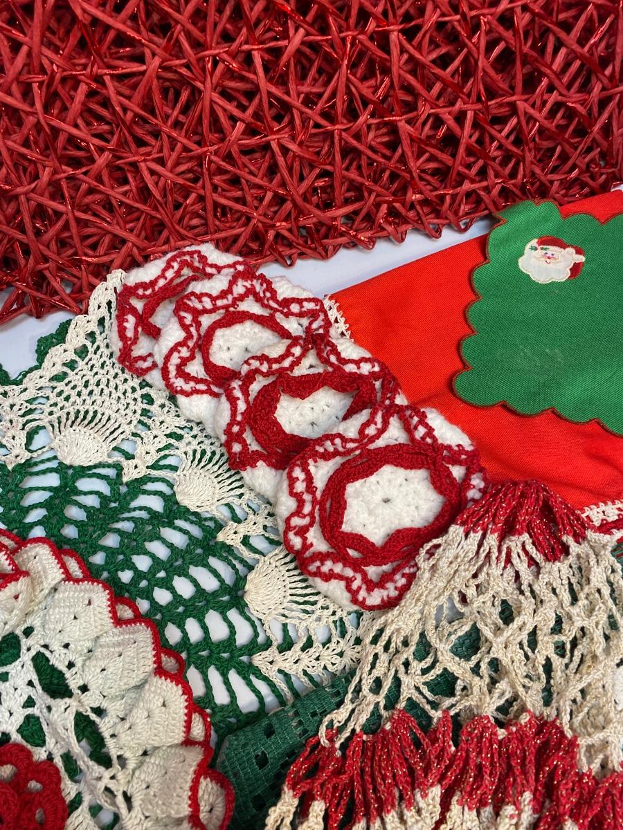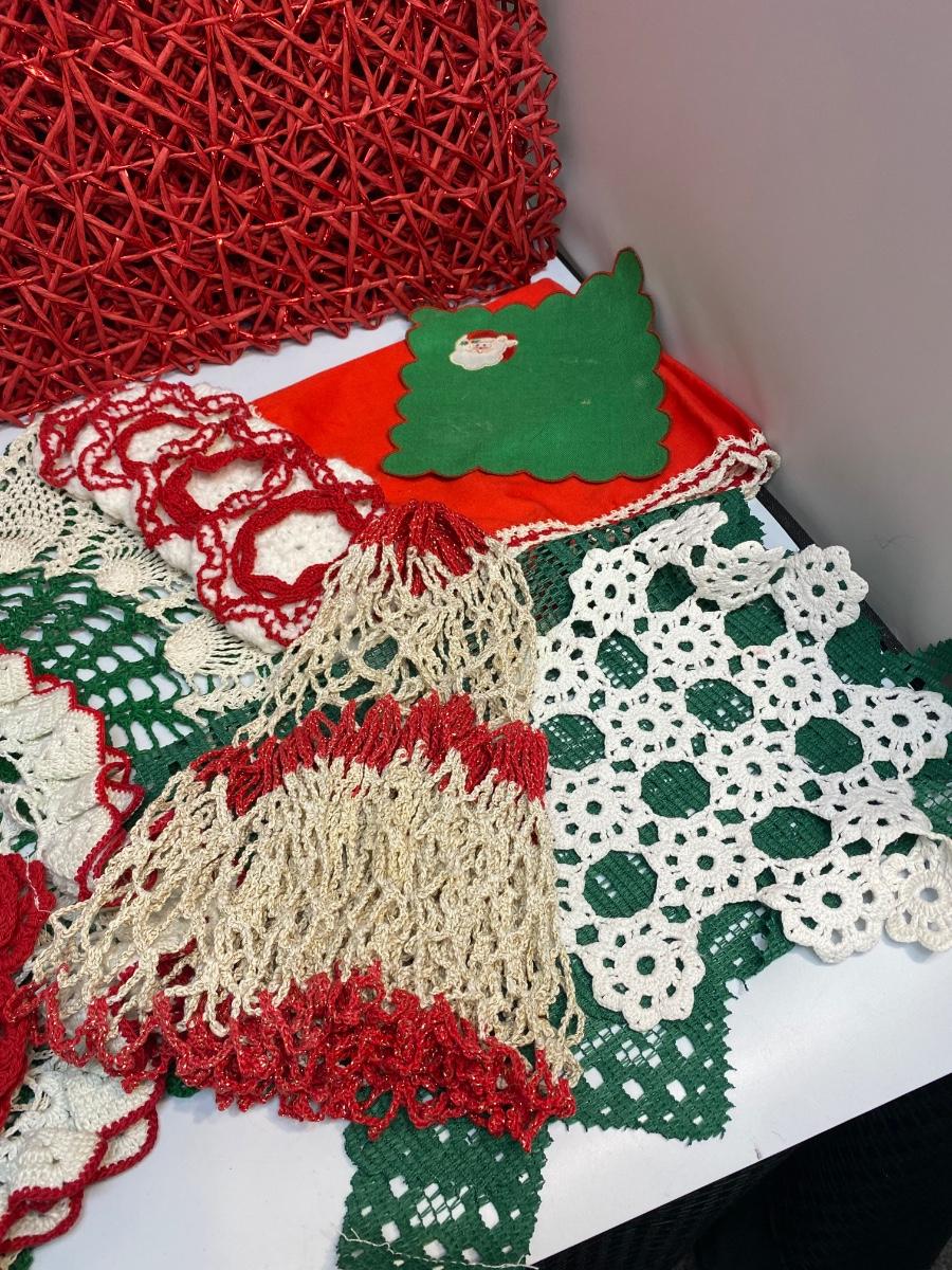 Red & Green Christmas Winter Holiday Seasonal Table Linens Doilies Lot