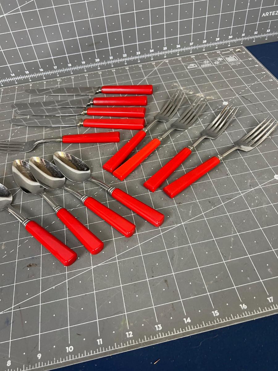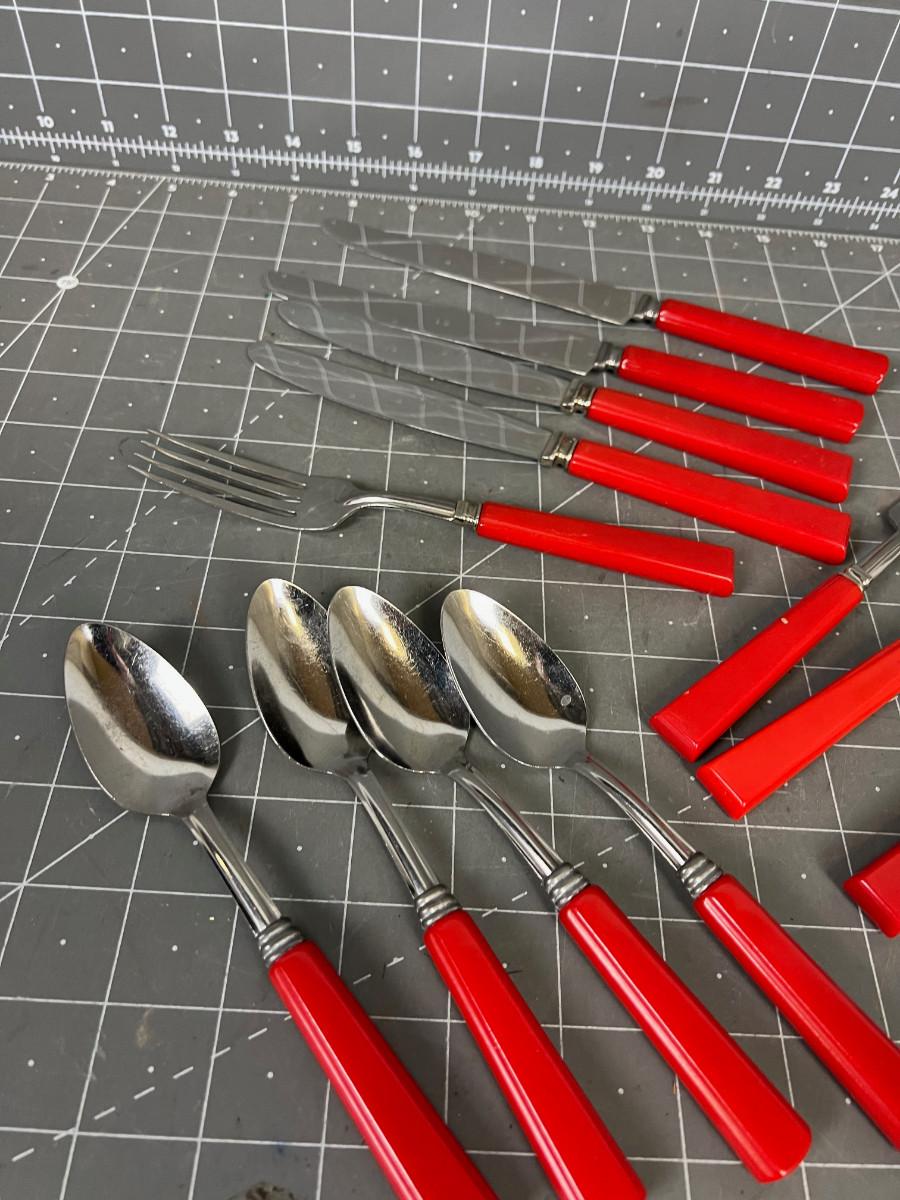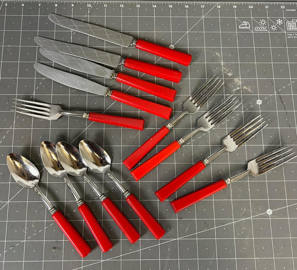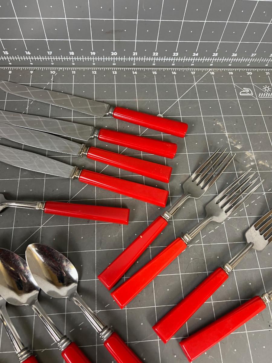 Red Handled Forks, knives, Spoons (Possibly Bakelite) Old
