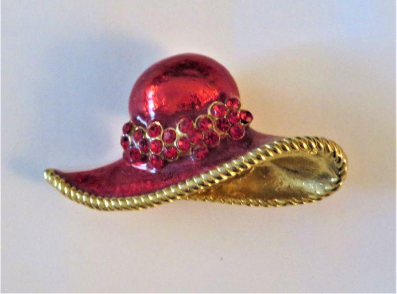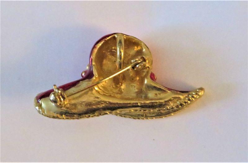 Red Hat Ladies Society Brooch Pin Gold Braided RIm Hat