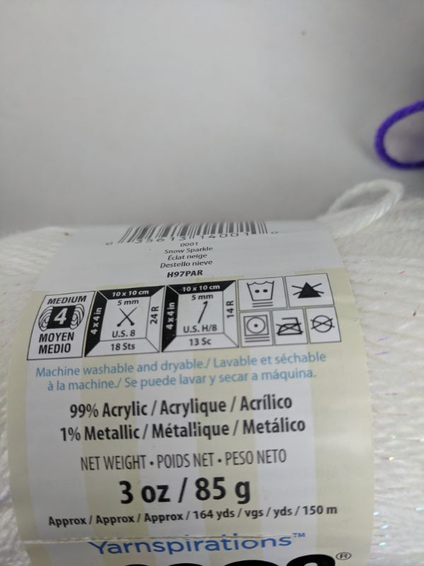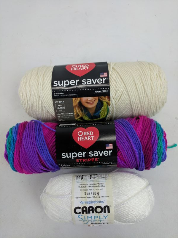 Red Heart Cream 7 oz 364 yds Yarn & Red Heart Polo Stripe 5 oz 236 ydds Yarn & Caron White Sparkle 3 oz 164 yds Yarn - New