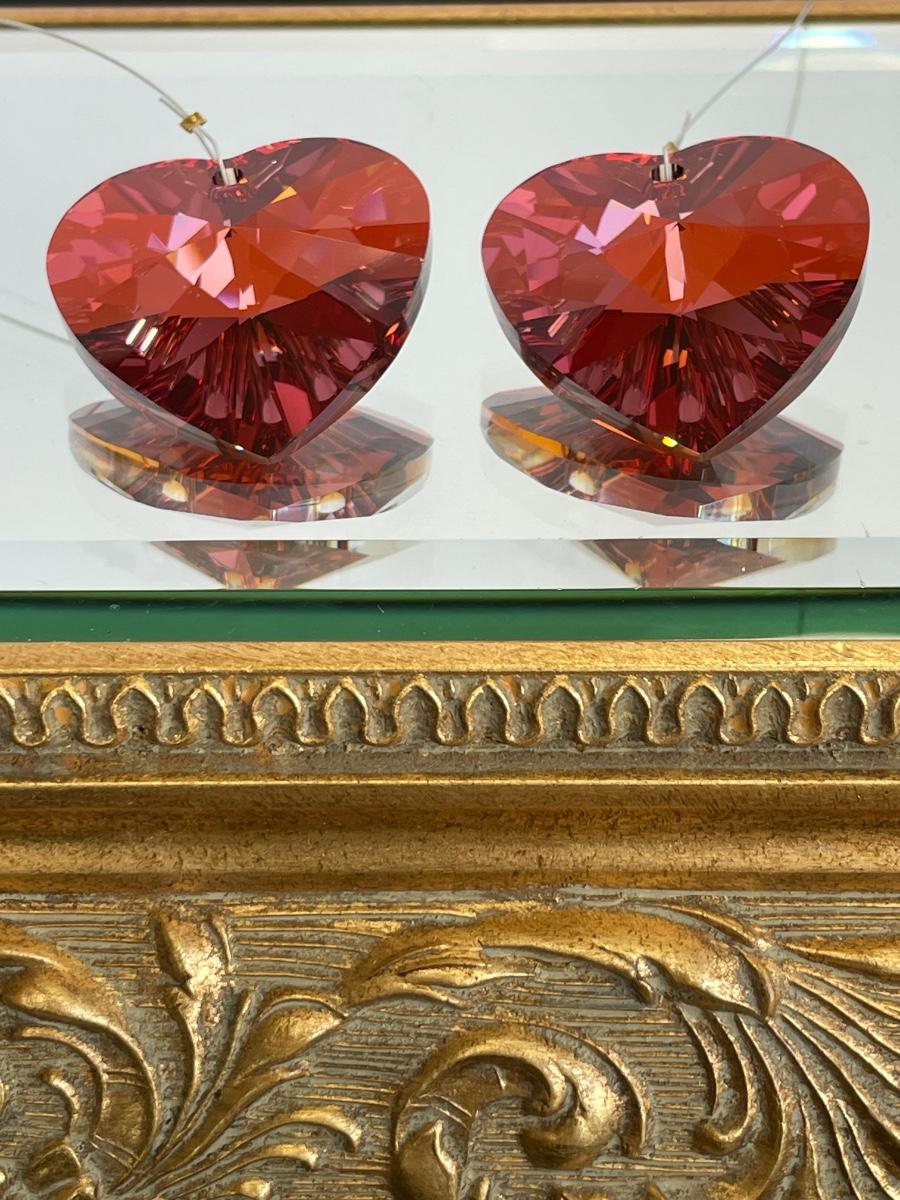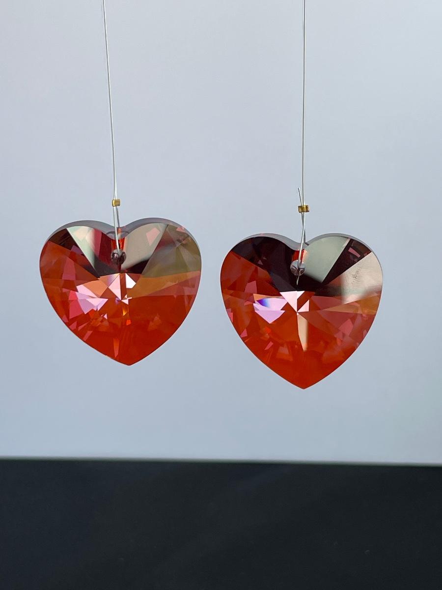 Red Heart Cut Lead Crystal Window Catchers