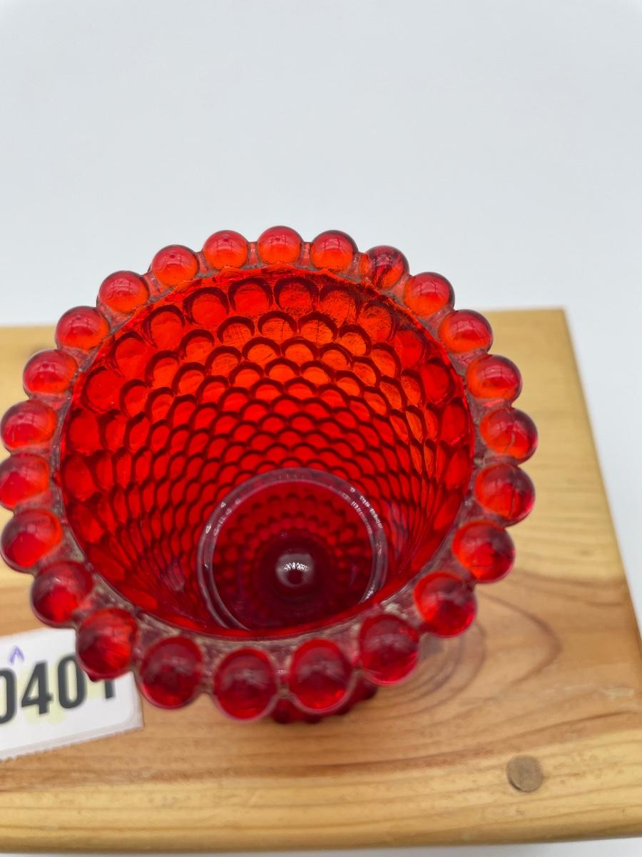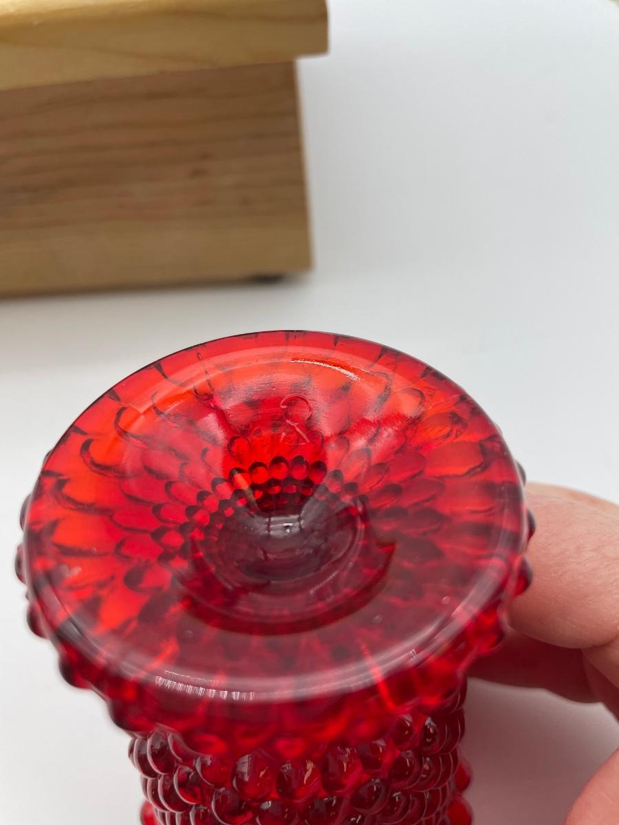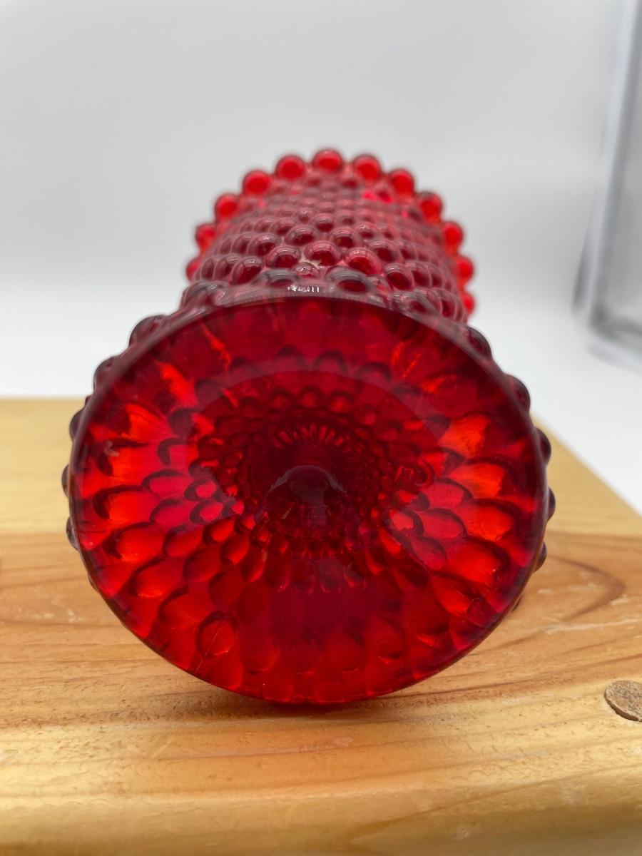 Red hobnail, glass footed candle art