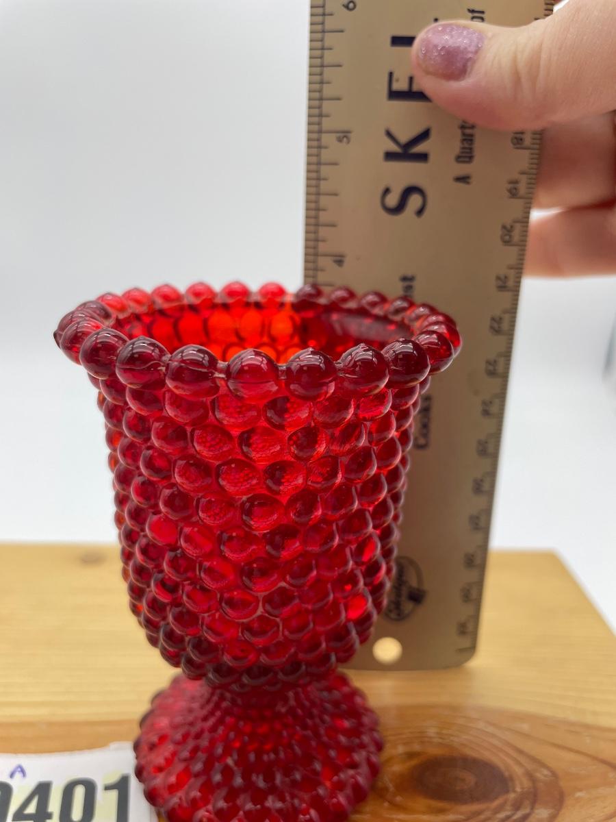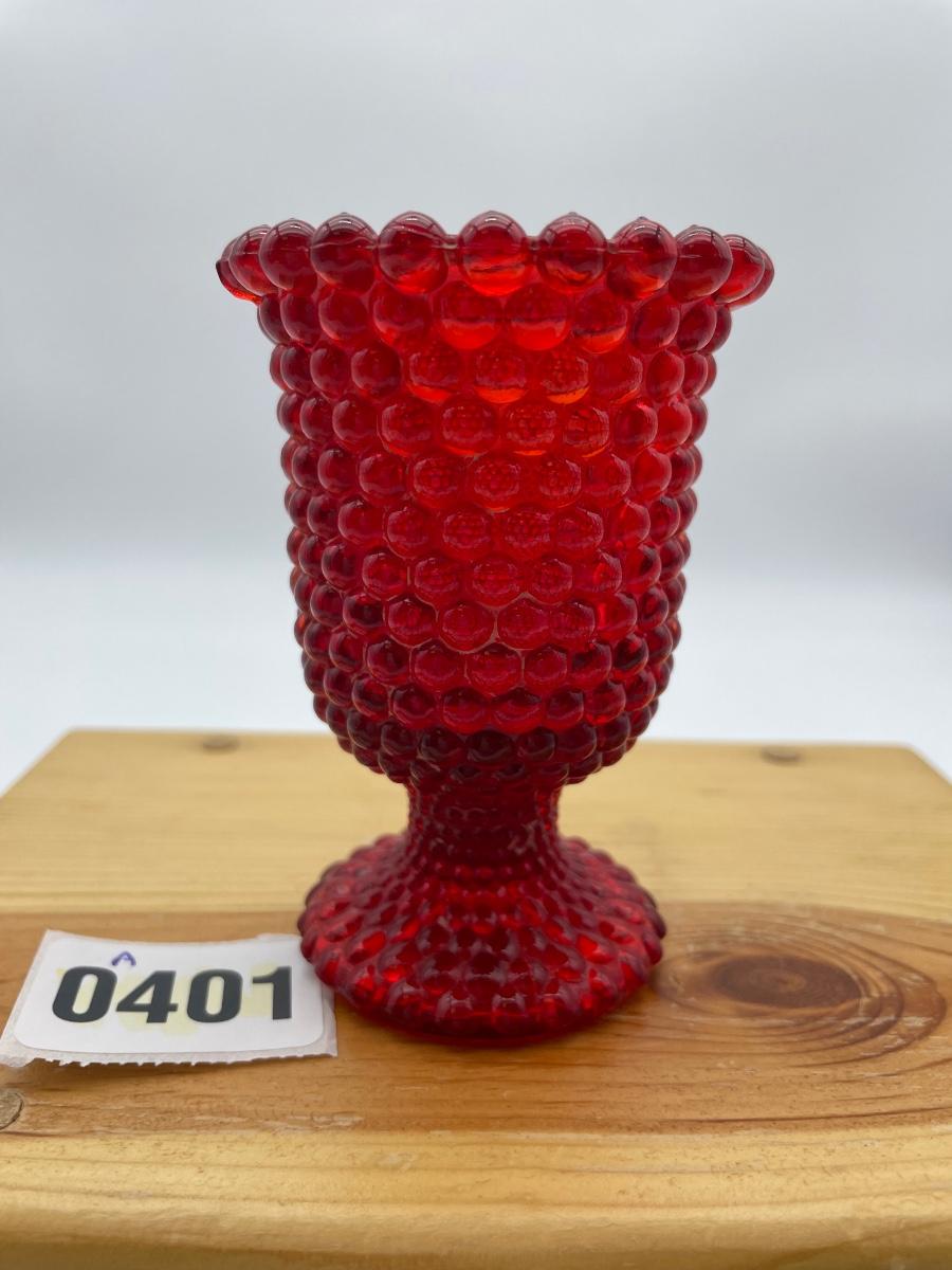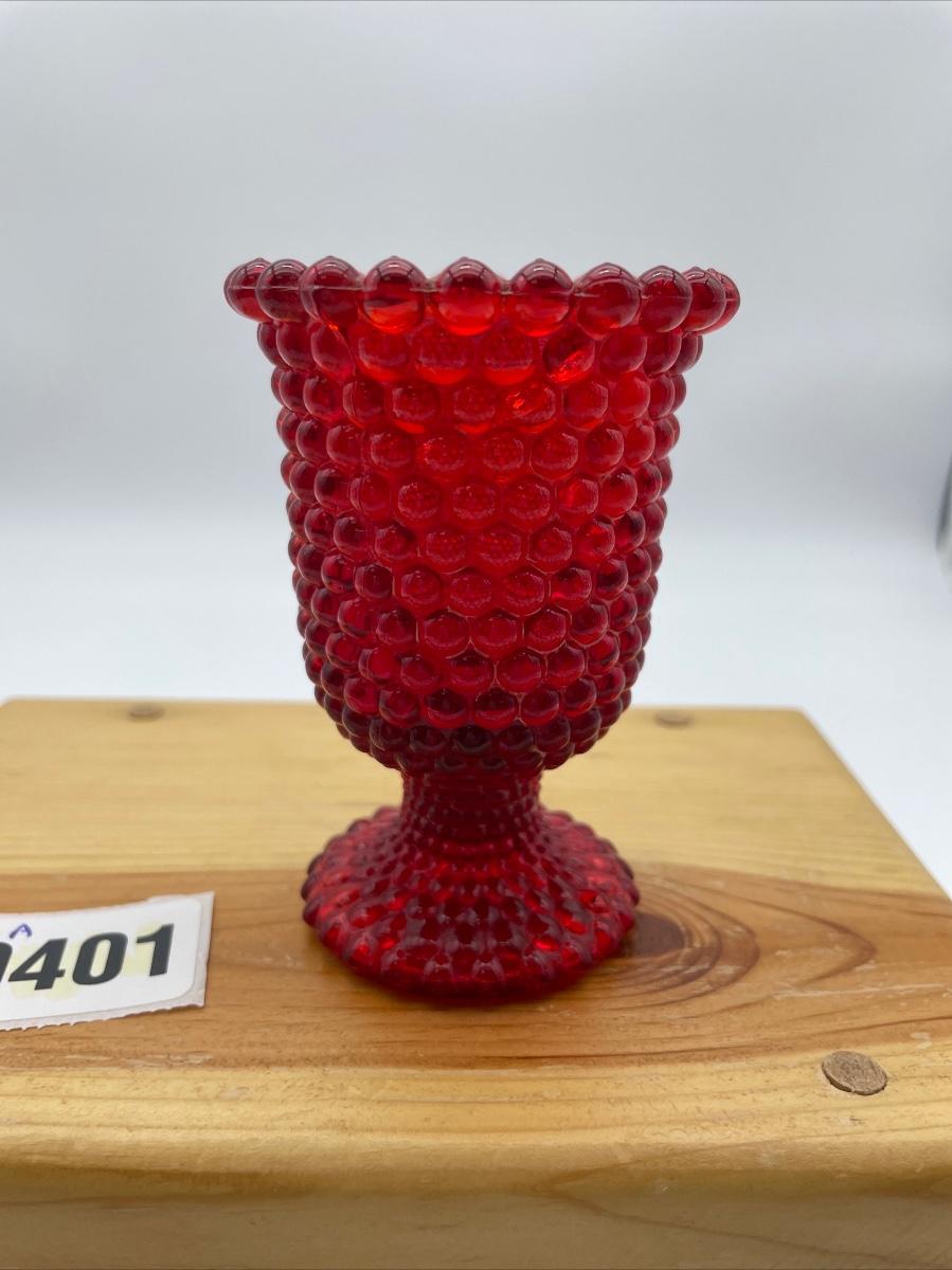 Red hobnail, glass footed candle art