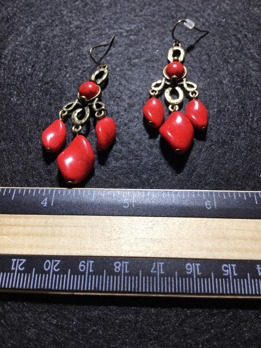 Red howlite stone type fashion earrings