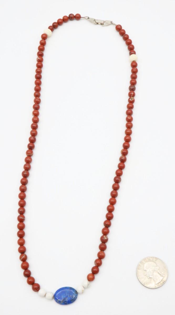 Red Jasper Beaded Necklace, measures approximately 24".