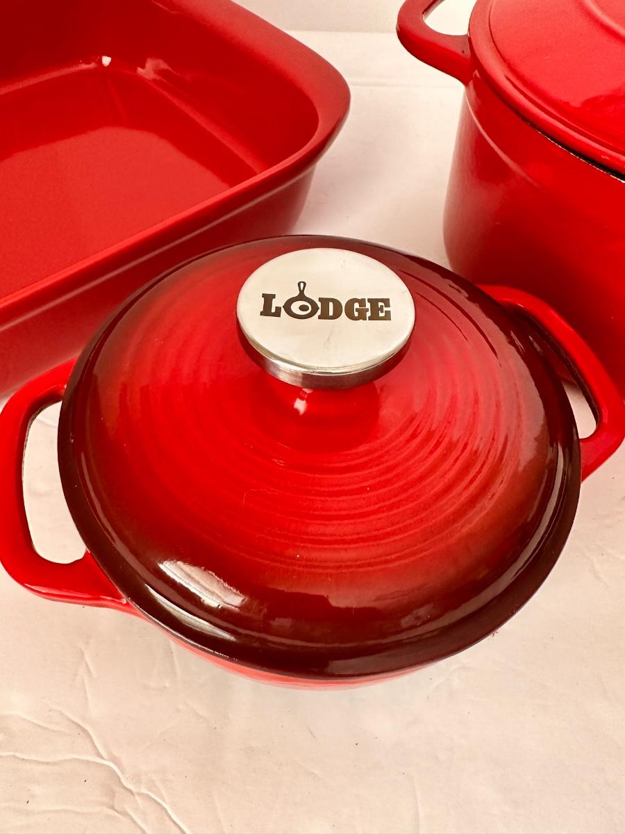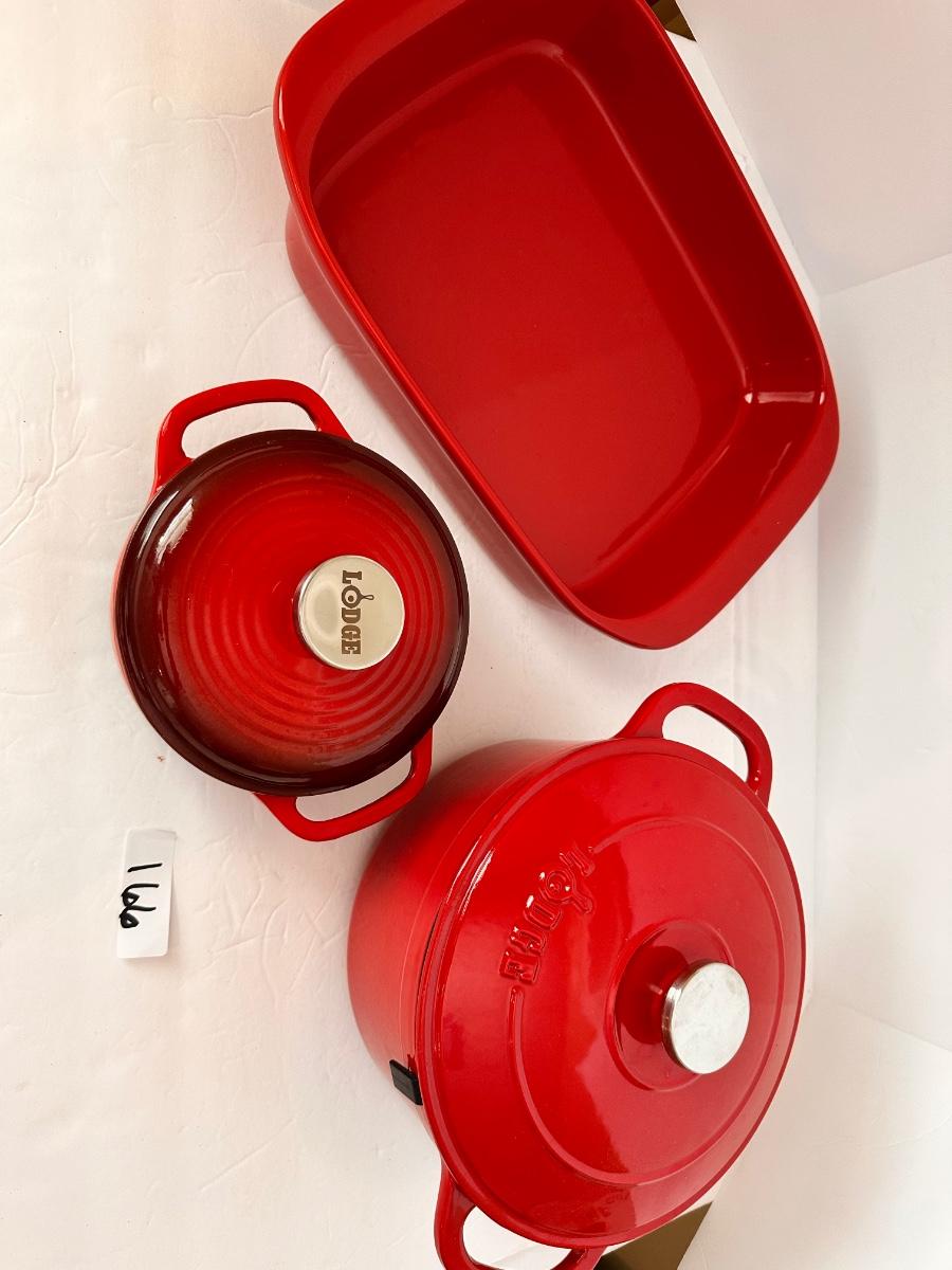 Rectangle Baking Dish, 2 Lodge Cast Iron Enamel Pots As Pictured