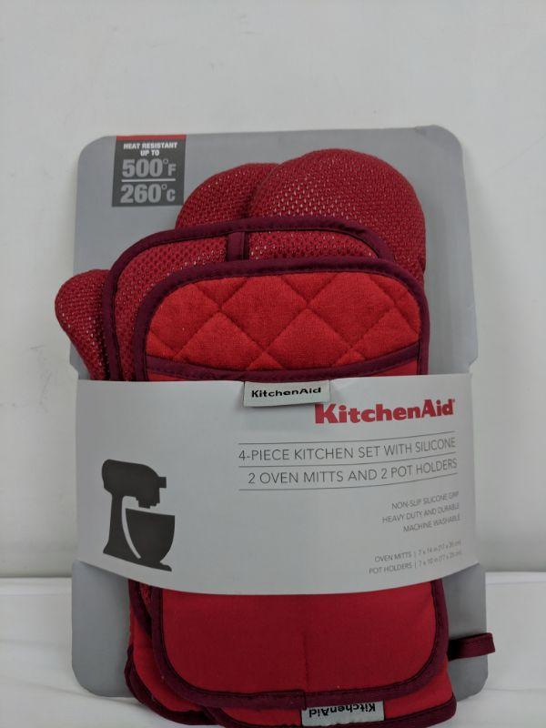 Red Kitchenaid 4-PC Kitchen Set & Silicone, 1 Oven Mitts & 2 Pots Holder - New