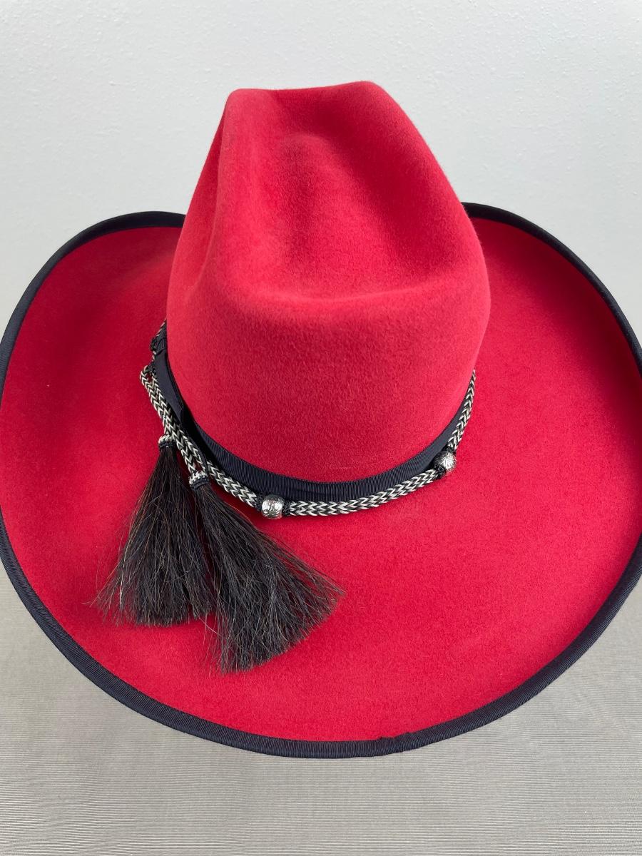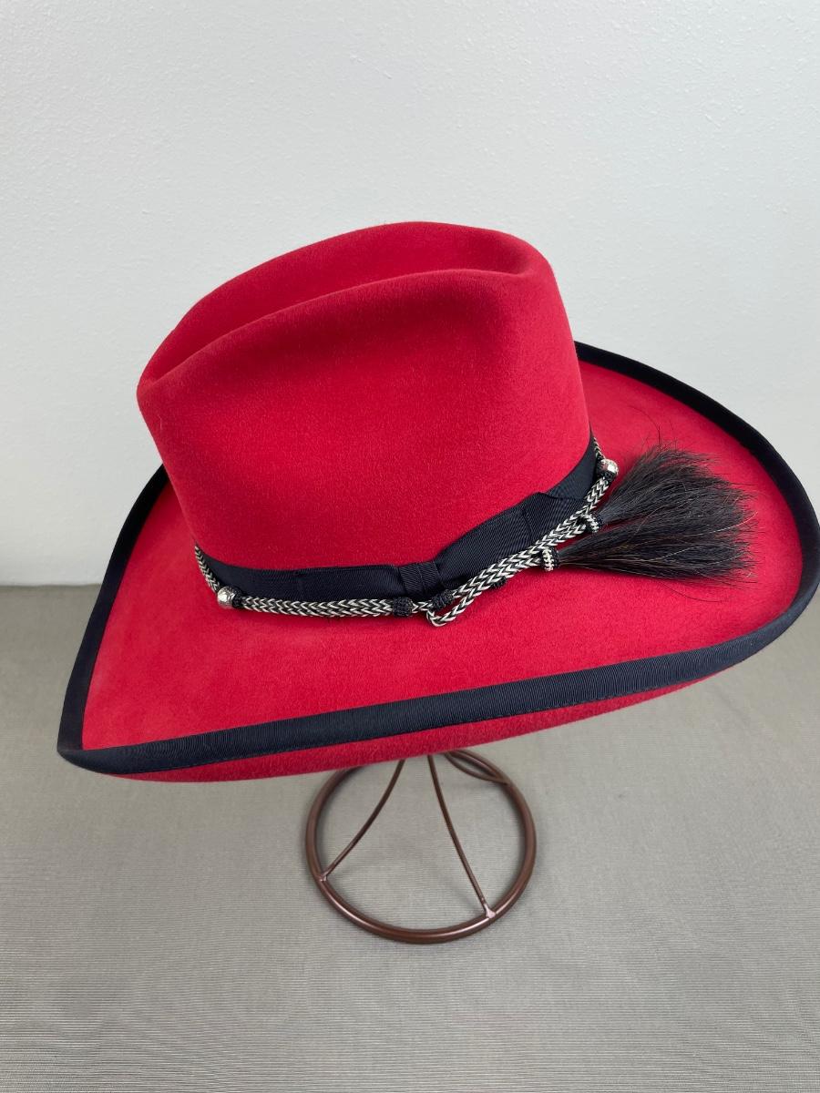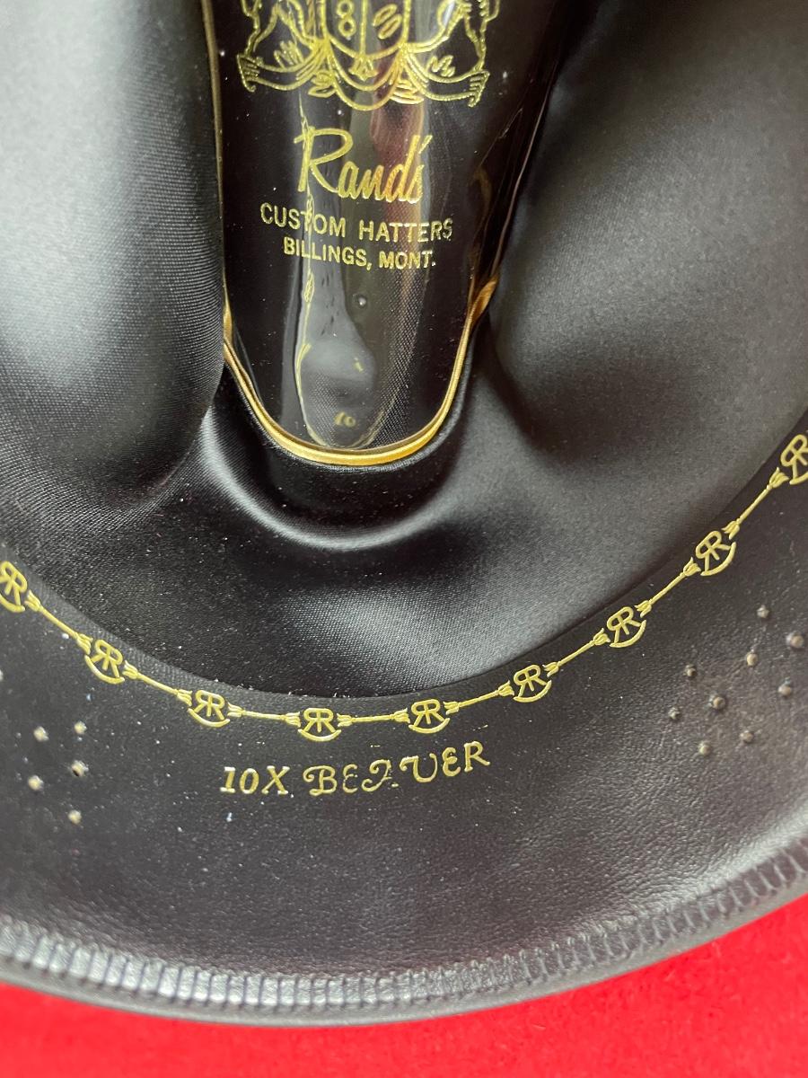 10 X Beaver with a 4 inch brim from Rand’s Custom Hatters in Billings MT. With Horse hair band tassel. Ladies size small 21” circumference. Approximate size 55 or 6 7/8.