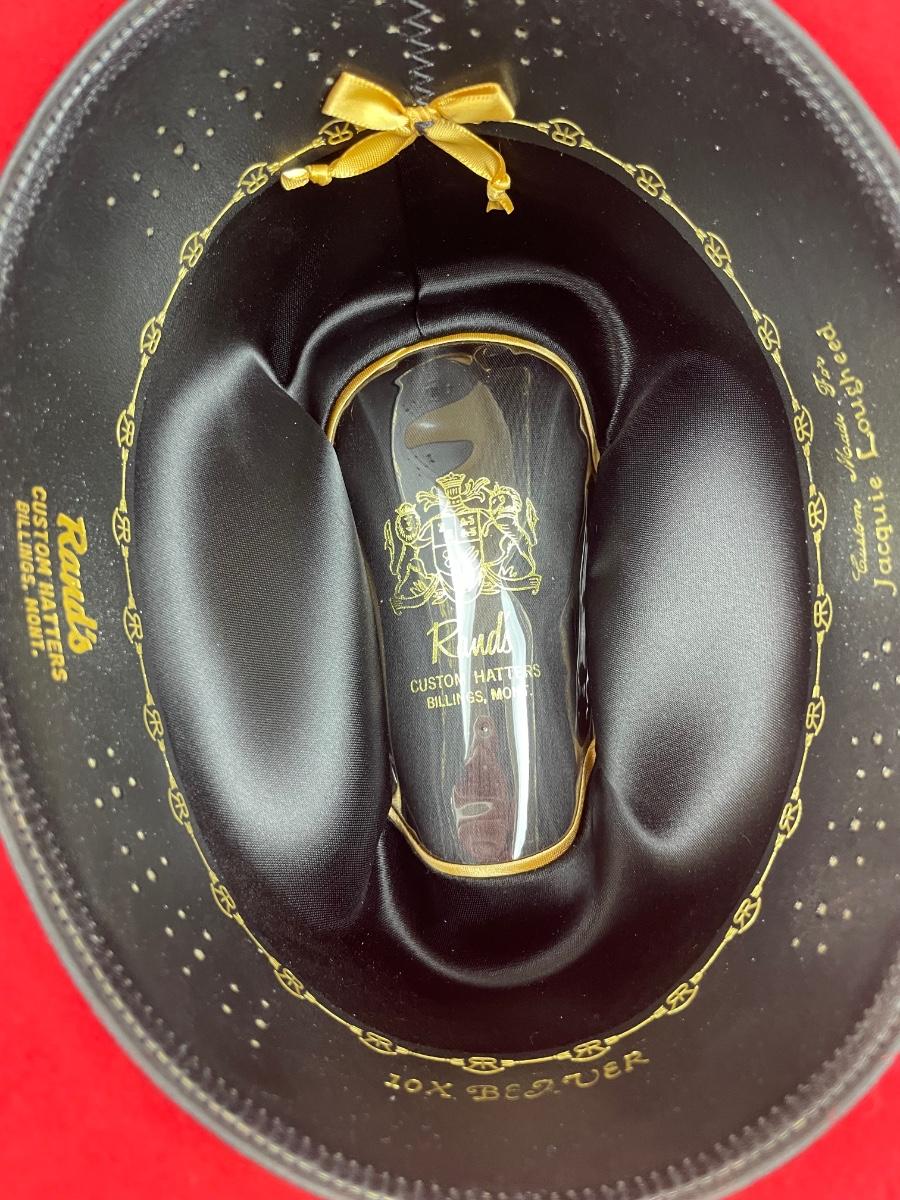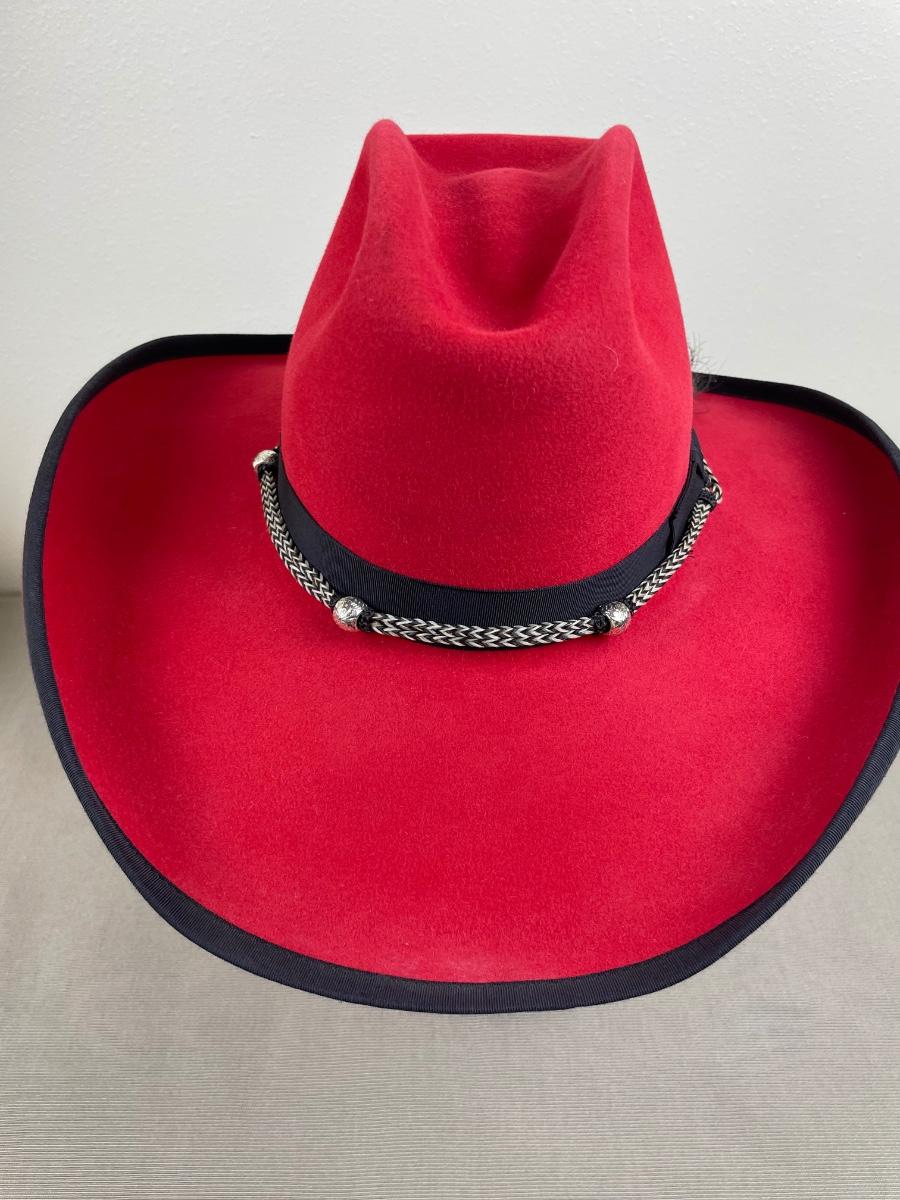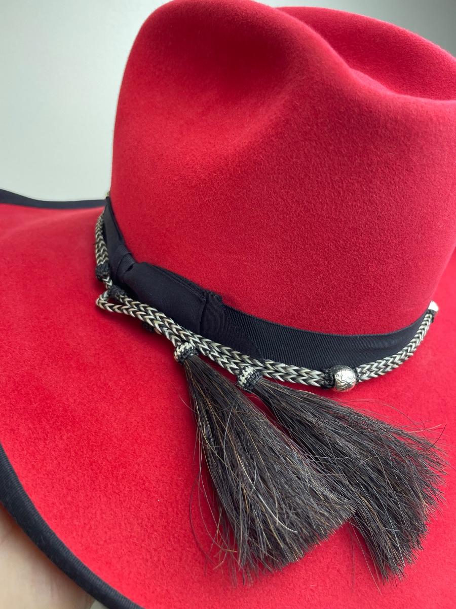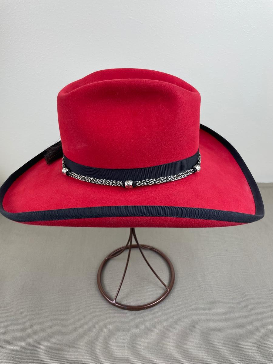 10 X Beaver with a 4 inch brim from Rand’s Custom Hatters in Billings MT. With Horse hair band tassel. Ladies size small 21” circumference. Approximate size 55 or 6 7/8.