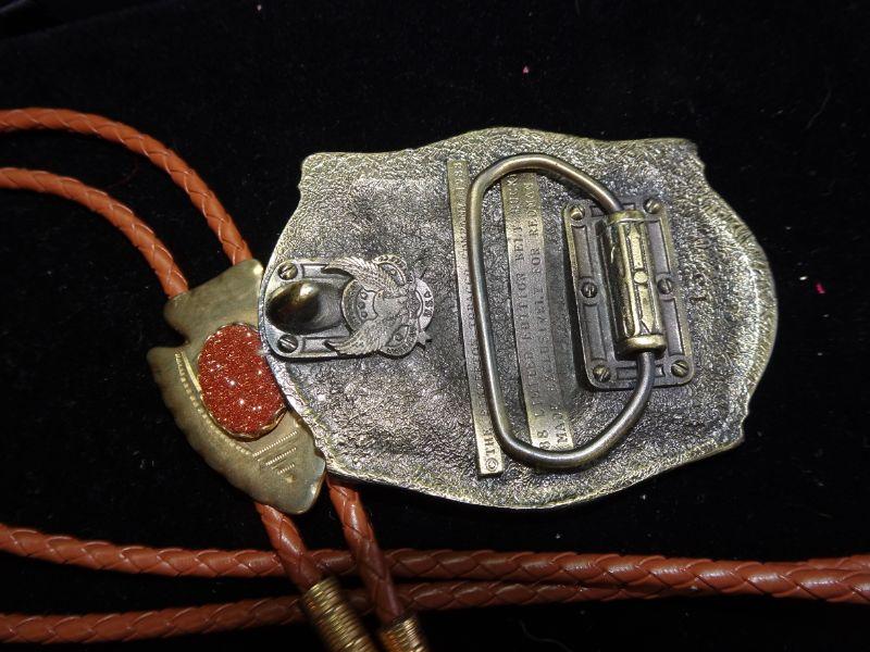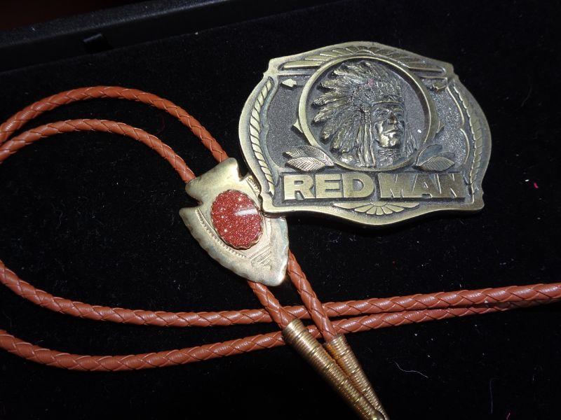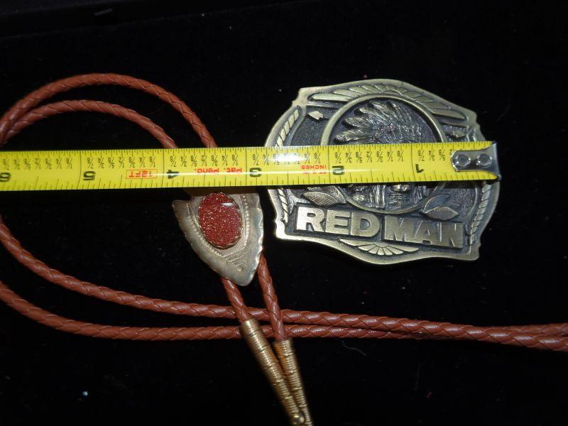 Red Man Brass Belt Buckle, Arrow Head Bolo Tie
