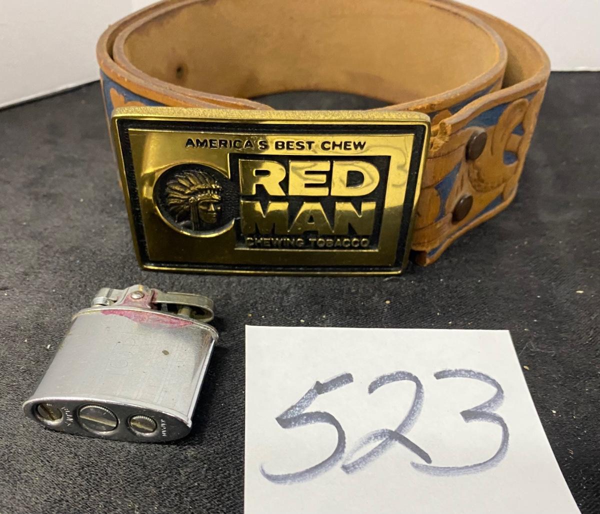 Red Man Buckle and Vintage Flint Lighter