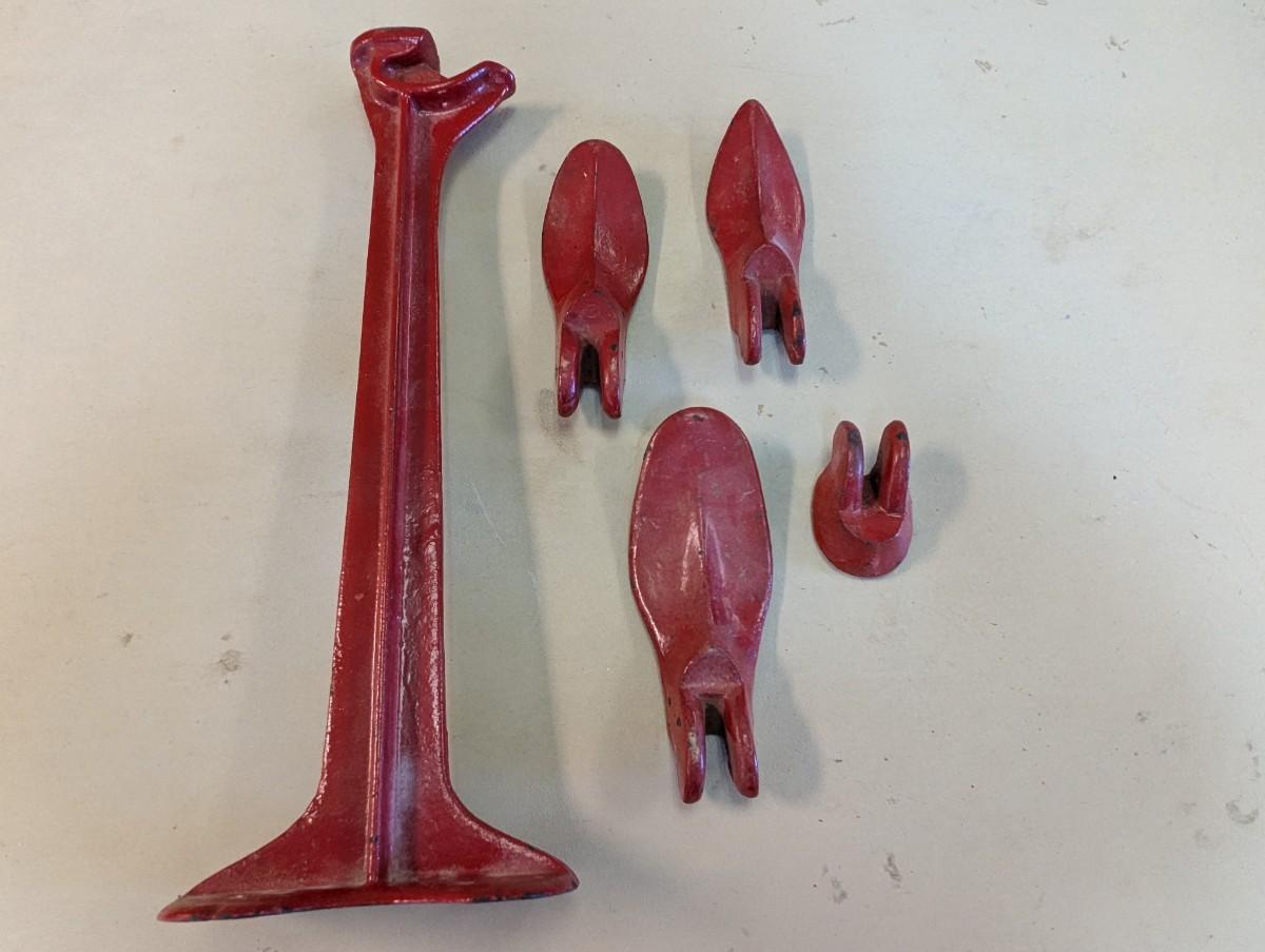 Red Metal Cast Iron Cobbler Shoe Set