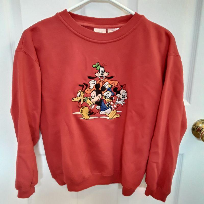 One - Red Disney Characters sweatshirt Pluto, Mickey, Donald Minnie and Goofy kids large 10/12