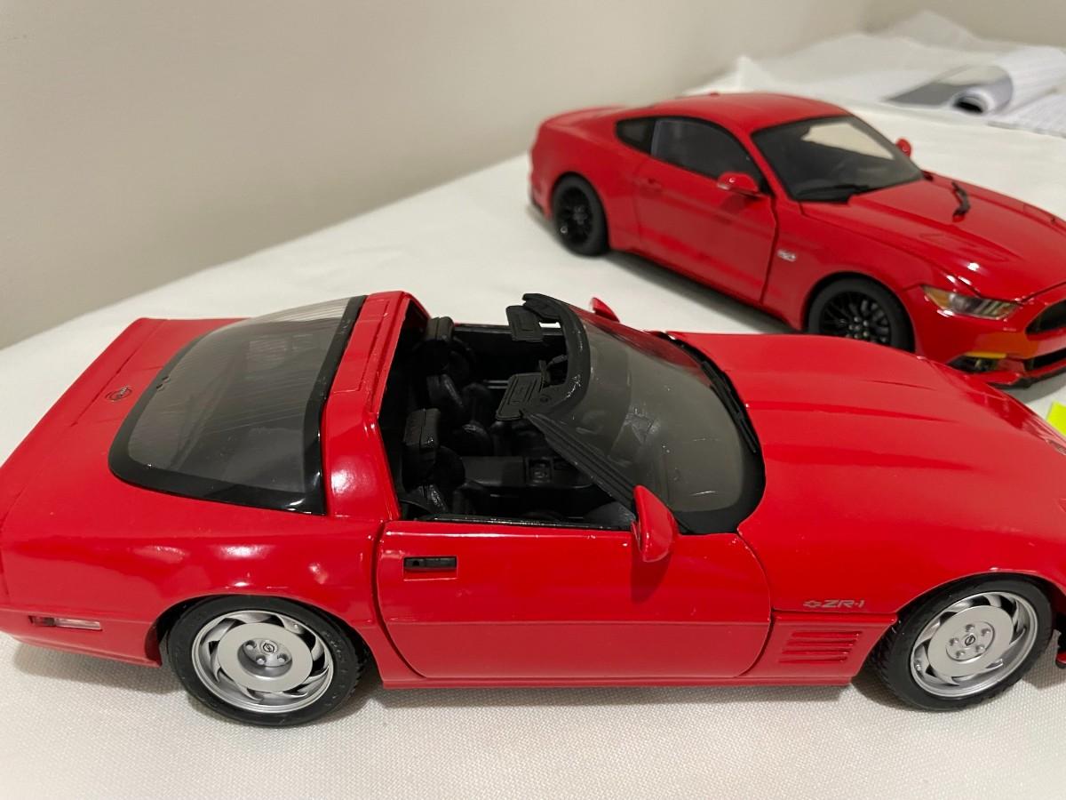 1992 Red Corvette ZR1 & Ford Mustang GT (1 wiper not attached) - 1:18 Scale
