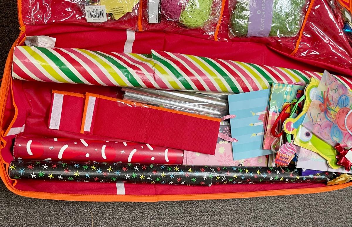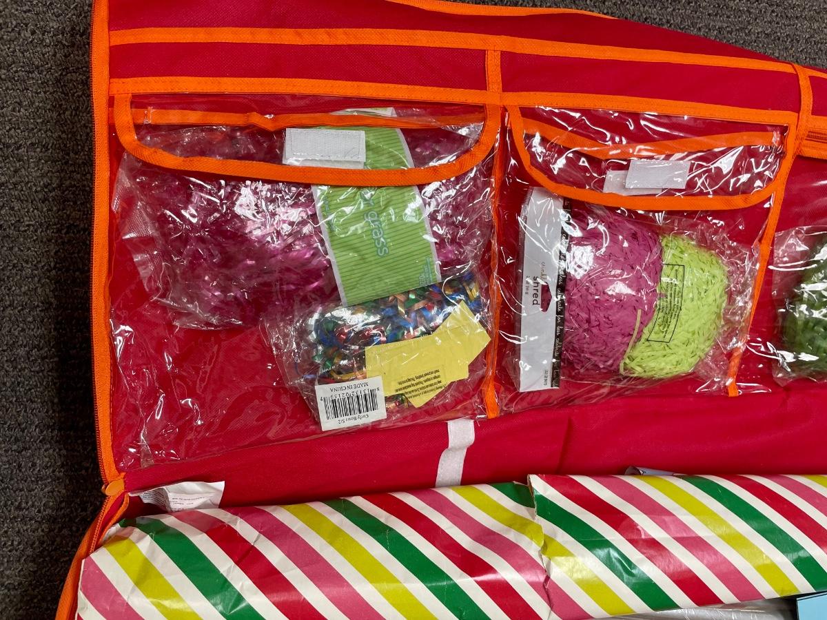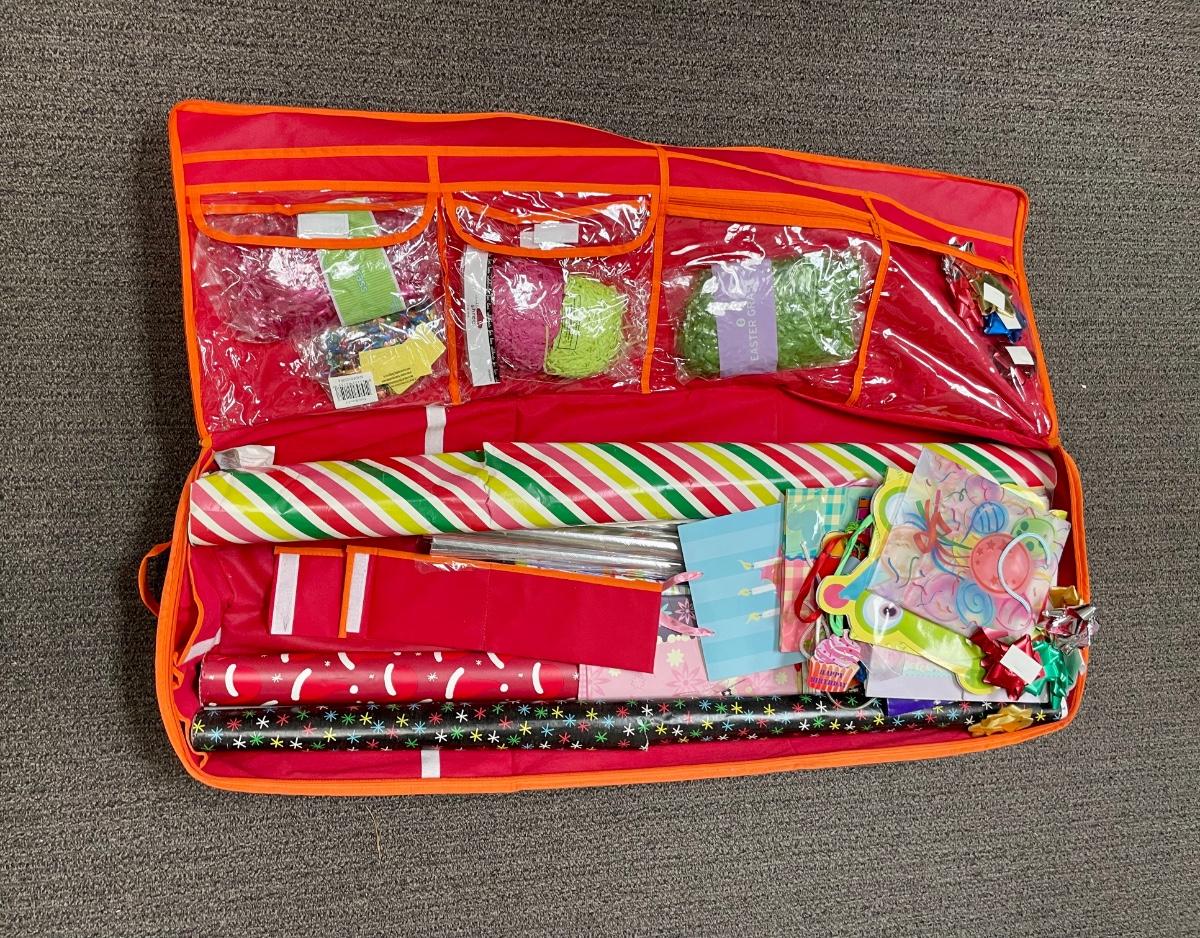 Red Nylon Wrapping Paper and Ribbon Storage Organizer