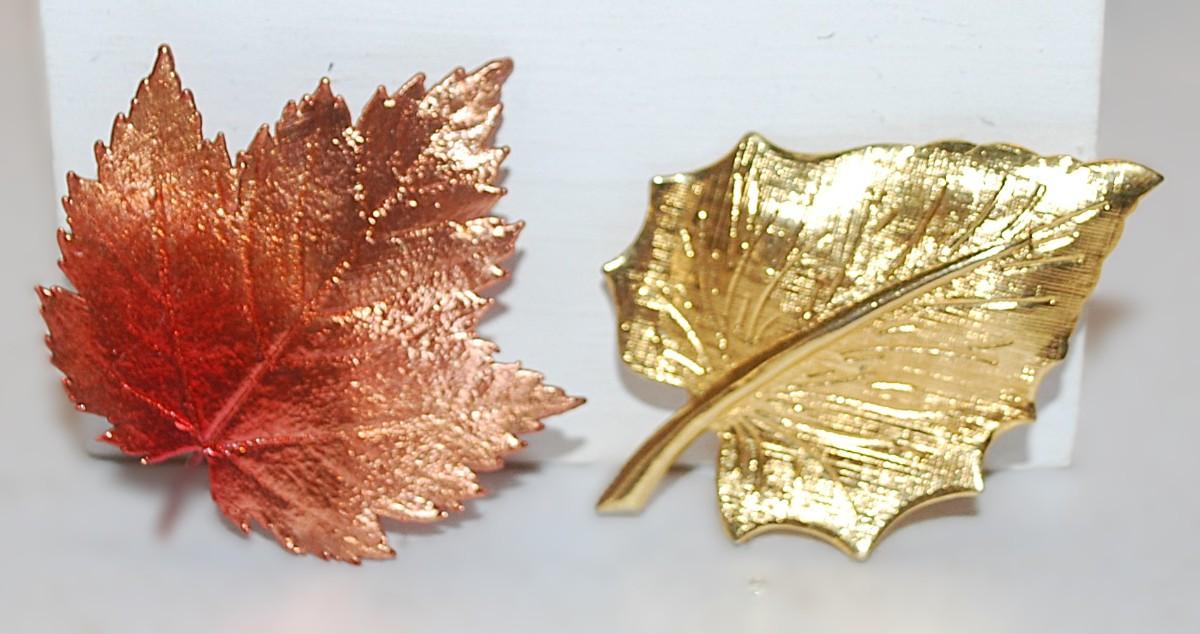 Red Oak & Gold Elm LEAF BROOCHES (1¾" to 1½") with Stems